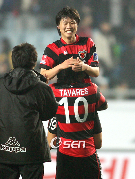 '승부는 양 날개에서 났다'. 31일 수원 월드컵 경기장에서 열린 수원과 포항의 경기는 사이드에서 승부가 갈렸다. 포항은 박원재와 최효진으로 이어지는 좌우 날개를 앞세워 수원을 공략했다. 반면 수원은 이들의 공격을 제대로 막지 못하며 결국 수비가 흔들렸고 결승골을 내주게 된 것. 포항은 박원재와 최효진이 잘해주었다. 양 선수는 사이드에서 상대 수비를 크게 흔들었다. 특히 최효진은 공격의 시발점이 되며 좋은 모습이었다. 박원재 역시 상대 왼쪽 공격을 잘 막으면서도 적시에 침투했다. 특히 후반 42분 따바레즈의 크로스를 백헤딩으로 연결한 것은 이날 경기의 백미였다. 수원은 김대의의 부상 공백이 아쉬웠다. 여기에 경기 초반 곽희주가 부상으로 아웃돼 문민귀가 빨리 투입된 것도 아쉬웠다. bbadagun@osen.co.kr 박원재.