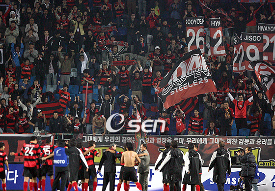 31일 수원 월드컵 경기장에서 열림 K리그 플레이오프에서 가장 큰 박수를 받은 대상 중 하나는 해병대 의장대였다. 수원은 하프타임 이벤트로 인근 해병대 사령부의 해병대 의장대를 초청했다. 해병대 의장대는 하프타임 10여 분 동안 멋진 모습을 선보이며 3만 여 관중들의 환호를 받았다. 해병대 의장대의 시범은 경기장을 찾은 어린이 팬들에게는 재미있는 볼거리를, 어른 팬들에게는 군대 시절의 추억을 떠올리게 할 만큼 호응도 좋았다. 하지만 아이러니컬하게도 이날 해병대 의장대의 시범이 더욱 친숙하게 다가오는 이가 있었으니 바로 경기장을 찾은 포항의 서포터들이었다. 포항은 해병대로 유명한 도시. 포항에는 해병대 1사단이 주둔하고 있으며 신병 훈련소 역시 포항에 있다. 지금도 해병이 되기를 원하는 장정들은 포항으로 향할 만큼 해병대는 포항과 친숙하다. 포항 스틸러스도 해병대와 친숙하다. 포항의 서포터스 이름도 마린스(Marines : 해병대)이며 홈경기에는 항상 다수의 해병대가 단체 관람을 온다. 후반에는 해병대만의 응원 시간이 있을 정도로 해병대와는 뗄래야 뗄 수 없는 관계가 바로 포항이다. 이런 친숙함 때문이었을까? 이날 경기에서 포항은 박원재의 결승골에 힘입어 수원을 1-0으로 누르고 챔피언결정전에 진출했다. bbadagun@osen.co.kr
