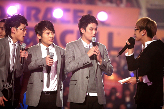 남성 3인조 그룹 VOS가 데뷔 4년만에 싱글 타이틀 곡 ‘매일매일’로 음악프로그램에서 1위를 수상하는 영광을 안았다. VOS는 1일 저녁 7시에 생방송으로 방송되는 케이블 채널 M.net ‘엠카운트다운’에서 현장집계를 합친 최종집계 851점으로 슈퍼주니어와 공동으로 11월 첫째주 1위를 수상했다. VOS의 이번 수상은 데뷔 4년만의 일이라 더욱 의미가 깊은 셈. 아울러 ‘엠카운트다운’ 역사상 공동수상 또한 이례적인 일이다. 무대를 내려온 VOS 멤버 김경록은 “멍하다”고 운을 뗀 뒤 “무대 위에서 수상소감을 어떻게 말했는지도 모르겠다. 정말 여기까지 온 것만으로도 감사하고 이렇게 큰 상을 주신 여러분들에게 감사하다”는 수상소감을 전했다. 아울러 그 와중에도 “회사가 차려놓은 밥상에 숟가락만 올려놓았을 뿐”이라고 덧붙여 웃음을 자아내기도 했다. 또다른 멤버 박지헌은 “우리가 1위를 한 것이 아니라 팬 분들이 1위를 만들어 주신 것”이라며 “이렇게 많은 팬들을 힘들게 하는 것이라면 다시는 1위를 하고 싶지 않다”며 팬들의 고마운 마음에 연신 눈물을 흘렸다. 한편 V.O.S는 2일과 3일에는 각각 KBS 2TV '뮤직뱅크'와 MBC '쇼! 음악중심'에 출연하며 오는 12월 7일부터 9일까지 성균관대학교 새천년홀에서 콘서트를 열 계획이다. yu@osen.co.kr 놀라움을 감추지 못하는 VOS에게 MC 이특이 "1위한것이 맞다"고 말해주고 있다. /엠넷 제공