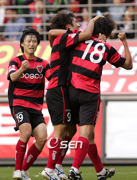 “요즘 우리가 상승세를 타고 있어서 초반 기선을 빼앗으면 의외로 쉽게 풀릴 겁니다”. 4일 오후 3시 포항 스틸야드에서 펼쳐진 성남 일화와의 챔피언 결정전 1차전을 앞두고 포항 스틸러스 관계자들은 한결같이 ‘초반 흐름’을 강조했다. 암표까지 매매된다는 소식을 접하고 오히려 팬들의 관심이 아니냐며 활짝 웃던 구단 직원은 “초반 흐름을 타면 성남은 아주 무서운 90분을 보내야 할 것”이라는 의미심장한 말을 했다. 선수들이 몸을 푸는 모습을 벤치 한 쪽에서 지켜보던 성남 관계자는 “분위기에서 포항이 한 발 앞서 있기 때문에 여기에 우리 선수들이 휘말리면 큰일 난다”고 우려섞인 목소리를 냈다. 경기 전 취재진과 만난 포항의 파리아스 감독은 “모든 선수들이 잘할 준비가 돼 있다”는 의미심장한 말을 던졌고, 김학범 성남 감독은 “경기 초반이 어려울 것”이라고 예상했다. 그리고 이같은 포항의 장담과 성남의 우려는 현실로 다가왔다. 볼 점유율은 그런대로 비슷했지만 짜임새있는 플레이를 펼친 포항과는 달리 성남의 뭔가 2% 빠진 듯 엉성했다. 설령 패하더라도 ‘가을 잔치’서 할 만큼 했고, 잃을 게 없다는 자신감 때문일까. 포항은 부담없이 필드를 누볐지만 성남은 디펜딩 챔프의 부담 탓인지 90분내내 허둥거렸다. 기싸움에서 포항이 성남에 판정승을 거둔 모양새였다. 체력적인 문제도 무시할 수 없으나 분위기와 흐름은 그 모든 걸 극복할 수 있는 원동력이 됐다. 반면 성남은 경기 감각 하락에 ‘김상식 파동’까지 겹쳐 한 번 더 어려움을 느꼈다. 결실은 전반 31분 이뤄졌다. 박원재의 기가 막힌 슈팅이 김용대가 지킨 골문을 꿰뚫는 순간 포항 벤치에 있던 파리아스 감독을 비롯한 코칭스태프와 선수들은 일제히 일어나 환호성을 질렀다. 후반까지 이어진 흐름 속에 포항은 후반 28분 고기구의 헤딩골과 29분 ‘특급 조커’ 이광재의 득점까지 터져 쐐기를 박고 3-1로 이겨 '기 싸움'에서 승패가 갈렸다. yoshike3@osen.co.kr 후반 포항의 두 번째 골을 성공시킨 고기구(오른쪽)에게 박원재(왼쪽) 등 동료들이 달려와 함께 기뻐하고 있다. /포항=황세준 기자 storkjoon@osen.co.kr