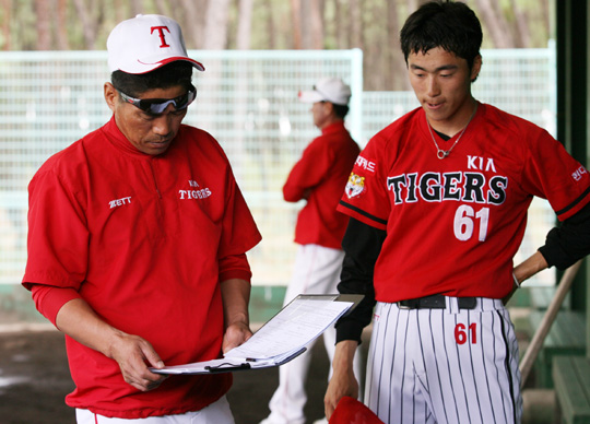 KIA의 미야자키 가을캠프에서 맞춤교육 바람이 불고 있다. 지난 2일부터 미야자키현 휴가에서 가을캠프에 돌입한 KIA 선수들은 오후 시간이 되면 뿔뿔이 흩어진다. 오후 훈련시간을 할애해 코치 1명이 선수 1명을 1~2시간 동안 조련하는 독특한 훈련방식을 도입한 것이다. 대개 종전 방식은 전 선수들이 합동으로 훈련을 실시했다. 프리배팅을 비롯해 수비 포메이션, 전술, 주루훈련 등 모든 선수들이 참가했다. 그러나 이번 KIA의 가을캠프에서는 오전에 전체훈련을 마치면 오후에는 선수 개인별로 취약했던 부분을 보완하기 위해 따로 훈련을 갖는다. 예를 들어 번트, 수비, 타격, 주루 등에서 약점이 있다면 해당 선수는 코치와 1대1로 붙어 집중 교육 시간을 갖는다. 체력이 약한 선수는 오로지 체력강화 훈련을 실시하는 것이다. 요즘 초등학교에서 방과 후 실시하는 특기적성 교육이나 다름없다. KIA 훈련이 다른 것은 정규 수업시간에 맞춤교육을 실시하는 것이다. 물론 조범현 신인 감독의 내놓은 새로운 기량 향상 방안이다. 코치와 선수가 1대1로 장시간에 걸쳐 훈련을 갖기 때문에 선수들은 자신의 취약점의 원인과 해법을 쉽게 찾을 수 있다. 반복훈련을 통해 기술 향상은 물론이고 체력도 기르는 일석이조의 효과를 보고 있다. 웨이트트레이닝과 수비훈련에 전념하고 있는 포수 김상훈은 "이렇게 많은 펑고를 한꺼번에 받은 적은 처음인 것 같다. 훈련할 때는 힘들지만 훈련을 마치고 나면 뿌듯한 기분이 든다"고 말했다. 김종모 수석 코치는 "선수 개인별로 부족한 부분에 대해서 이번 캠프에서 완벽하게 보완할 수 있도록 할 것이다. 그동안 공동으로 훈련을 하다보니 개인별 기술을 향상시키는 데 부족한 부분이 있어 이 같은 훈련을 실시하게 됐다"고 설명했다. sunny@osen.co.kr 조범현 감독이 투수 이범석에 관한 자료를 검토하고 있다./KIA 타이거즈 제공.