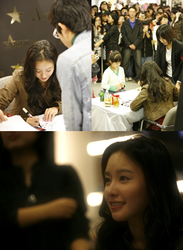 배우 김아중(25)의 팬 사인회에 많은 인파가 몰려들었다. 지난 3일 오후 4시 한 백화점에서 김아중의 팬 사인회가 열렸다. 150명 선착순으로 진행됐지만 김아중을 보기 위해 몰려든 팬들로 인산인해를 이뤘다. 행사 두 시간 전부터 김아중의 사인을 받기 위해서 끝이 보이지 않는 줄 행렬이 이어졌다. 김아중은 팬 사인회 내내 환한 미소를 잃지 않으며 차분한 모습으로 팬들에게 사인을 했다. 팬들의 사진 촬영에도 흔쾌히 포즈를 취하는 등 팬들과의 즐거운 시간을 보냈다. 김아중은 “이렇게 많은 팬들이 오실 줄을 몰랐다”며 “이렇게 많이 반겨주셔서 너무 감사하다”라고 밝혔다. 김아중은 지난 10월 31일 ‘영화의 날’에서 유망 영화인 상을 조인성과 함께 수상했다. 지난해 찍은 영화 ‘미녀는 괴로워’로 올해 각종 영화제의 상을 휩쓸고 있다. crystal@osen.co.kr 예당엔터테인먼트 제공.