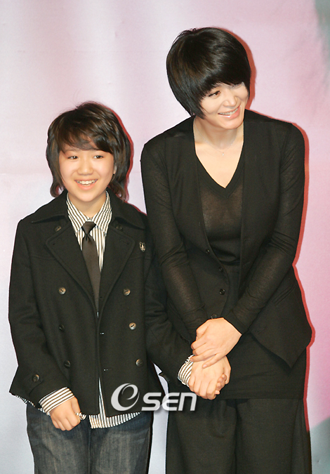 엄마와는 전혀 어울리지 않는 여자(김혜수)와 그 여자를 열한번째 엄마로 받아들이는 한 소년(김영찬)이 미워하고, 이해하고, 사랑하고, 이별하며 소중한 인연을 만들어가는 이야기 '열한번째 엄마' 제작보고회가 8일 오후 서울 소격동 아트선제센터에서 열렸다. 김혜수가 김영찬 군의 손을 꼭 잡고 취재진을 향해 인사하고 있다. /황세준 기자 storkjoon@osen.co.kr