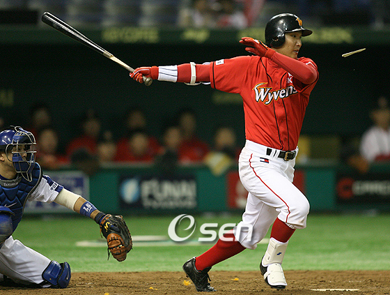 '코나미컵 아시아시리즈 2007' 예선 1차전 한국 SK 와이번스와 일본 주니치 드래곤스 경기가 8일 저녁 도쿄돔에서 벌어졌다. SK의 4회초 1사 2루서 이진영의 방망이가 부러지면서 빗맞은 2루 땅볼 타구가 나오고 있다. 2루수의 송구를 1루수가 받지 못해 2루주자 김재현이 홈인, 선취점을 올렸다./도쿄돔=김영민 기자ajyoung@osen.co.kr