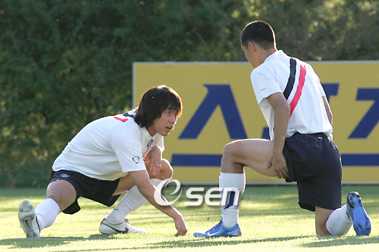이번에는 투톱 포메이션을 활용할 수 있을까. 오는 17일 오후 7시 우즈베키스탄 타슈켄트의 센트럴 아미 스타디움에서 펼쳐질 2008 베이징올림픽 아시아 최종예선 5차전을 앞두고 있는 올림픽대표팀의 공격 전술이 대략 드러난 것 같다. 박성화 감독이 이끄는 올림픽팀은 지난 8일 오후 파주NFC 충무구장에서 진행된 훈련에서 박주영을 중심으로 한 투톱 공격력을 점검했다. 훈련 마지막 코스로 11대11 미니게임을 택한 박성화 감독은 전반전에 박주영과 김승용을 세웠고, 이후 팀을 바꿀 때 김승용 대신 신영록을 투입시켜 공격진의 움직임을 살폈다. 박성화 감독이 이처럼 선수를 바꾼 까닭은 한 가지. 현지 그라운드 컨디션이 썩 좋지 않기 때문이다. 센트럴 아미 스타디움은 지난달 시리아 원정때보다 훨씬 나은 편이지만 울퉁불퉁해 볼 컨트롤이 쉽지 않다. 훈련 전 취재진과 만난 자리에서 박 감독은 "우리가 기술이 좋은 공격수들을 많이 보유하고 있지만 시리아전에서도 봤듯 경기장 여건이 좋지 않으면 원하는 축구를 펼치기 어렵다"는 반응을 보였다. 매끄러운 축구를 즐겨 구사하는 올림픽팀의 고전이 예상된다. 여기에 우즈벡 선수들 특유의 거친 플레이와 몸싸움도 경계할 만한 요소. 그러나 다행히도 올림픽팀은 이를 어느 정도 감안하고 있었다. 상황과 주위 여건에 따른 대비책까지 마련한 모양새다. 모두 투톱을 기준으로 했다. 박주영과 김승용은 짧은 패스를 주고받으며 아기자기한 공격을 시도한다면 신영록이 투입된 이후의 상황은 확실히 다르다. 무게감이 실린 반면 다소 투박한 편이다. 그동안 올림픽팀은 4-3-3 포메이션을 보다 선호했다. 측면에서의 빠른 침투와 기동력을 내세운 공격 전술이 중심이 됐다. 이제 4-4-2를 구축해 색다른 변화를 추진한다. 투톱이 공격을 이끌 올림픽팀. 박성화 감독이 내릴 우즈벡 원정에서의 선택은 무엇일까. yoshike3@osen.co.kr 박주영-김승용.