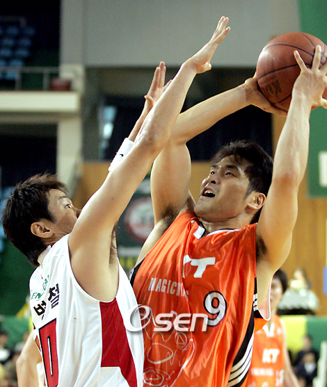 21점을 넣은 조동현(31)이 부산 KTF의 3연승을 이끌다. 추일승 감독이 이끄는 부산 KTF가 9일 부산 사직체육관에서 열린 인천 전자랜드와의 경기서 조동현이 21점을 넣는 등 활약에 힘입어 83-79로 승리를 거뒀다. KTF는 경기 초반 칼 미첼이 내외곽을 가리지 않는 득점포로 앞서 나갔다. 여기에 조동현의 외곽포와 또 다른 새 외국인 선수 제이미 켄드릭이 야투를 터트리며 인천 전자랜드를 따돌렸다. 반면 전자랜드는 정영삼과 전정규의 외곽포로 맞섰다. 외국인 선수 1순위 테런스 섀넌도 덩크슛을 성공시키는 등 점수차를 좁혔다. KTF는 역전을 허용하지 않으며 전반을 43-40으로 앞선 채 마쳤다. 3쿼터 들어 미첼은 한국 농구에 완전히 적응한 듯 야투를 차곡차곡 넣으며 전자랜드의 추격을 뿌리쳤다. 조동현도 6점을 넣었고 종료 1분전 미첼은 회심의 3점슛을 성공시키며 64-56으로 8점차 리드한 채 마무리했다. 전자랜드는 섀넌이 득점에 가세했고 황성인이 3점슛을 터트리는 등 추격을 펼쳤으나 막판 집중력에서 앞선 KTF가 전자랜드를 누르고 1라운드 마지막 경기를 승리로 장식했다. ■ 9일 전적 ▲ 부산 부산 KTF 83 (22-16 21-24 21-16 19-23) 79 인천 전자랜드 7rhdwn@osen.co.kr