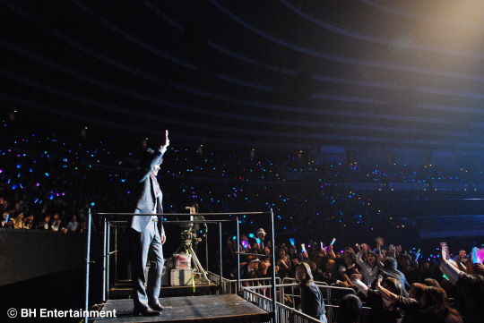이병헌(37)이 15일 일본 전국 아레나 투어를 시작했다. 이병헌은 15일 일본 오사카죠홀에서 1만 2000명의 관객이 운집한 가운데 4대 도시 투어의 순조로운 출발을 알렸다. 일본 최고의 연출가 아키모토 야스시가 연출을 맡은 공연은 대규모 무대세트와 내용면에서 웅장하고 거대한 스케일을 선보였다. 첫 등장부터 마무리까지 미국 라스베이거스 쇼를 연상시킬 만큼 독특한 연출로 2시간 30분 가량 진행된 이번 공연은 기존 팬미팅의 개념을 뛰어넘는 완벽한 하나의 공연이었다는 평가를 받았다. 특히 이날 이병헌은 대형 그랜드피아노 앞에서 평소 좋아하는 영화 ‘씨네마 천국’의 주제곡 ‘Love Theme’를 연주하는 로맨틱한 면모를 선보여 일본 팬들을 열광케 했다. 또 나지막한 목소리로 편지를 읽자 객석에서는 일부 팬들이 눈시울을 붉히기도 했다. 공연이 끝난 후 일본 팬들은 팬사이트를 통해 “기대한 것 이상이었다. 치밀하고 탄탄한 구성에 큰 행복을 느꼈다” “팬들을 위한 성의를 있는 그대로 느낄 수 있는 자리였다” 등 만족감을 나타냈다. BH엔터테인먼트 송완모 부사장은 “규모 뿐 아니라 내용면에서 질적 향상된 하나의 공연이 될 수 있도록 노력했다. 아시아 문화가 글로벌화 되고 있는 시점에 한류에 안주하지 않는 진보되고 업그레이드 된 콘텐츠가 필요하고 그것이 한류를 유지하고 발전시키는 길이다”고 전했다. 이병헌은 오는 28일까지 오사카 후쿠오카 도쿄 나고야 등 일본 4대 도시를 돌며 아레나 투어를 펼친다. pharos@osen.co.kr BH엔터테인먼트 제공.