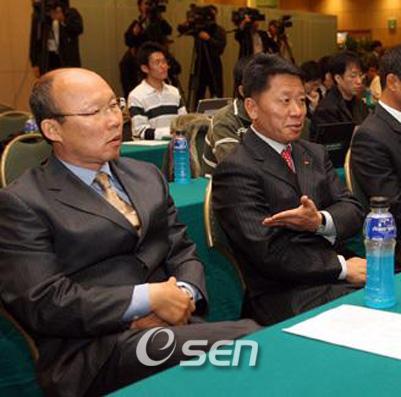 안타까운 소식이다. 제주 유나이티드의 정해성 전 감독(49)에 이어 경남 FC 돌풍을 일으킨 박항서 감독(48)마저 끝내 공식 사퇴했다. 경남 FC는 지난 16일 밤 자신을 둘러싼 갖은 풍문과 구단 경영진과의 갈등으로 사직서를 낸 박항서 감독과 계약을 조기에 종결지었다고 공식 발표했다. 정 감독은 이날 잉글랜드 프리미어리그 연수를 위해 영국으로 출국했다. 이로써 지난 2002 한일월드컵에 코칭스태프로 참가, 거스 히딩크 현 러시아대표팀 감독을 보좌해 4강 신화를 동반 작성했던 두 주역들이 모두 현장을 떠나게 됐다. 어려운 팀 살림에도 불구하고 주어진 환경에서 최선을 다했고, 여전히 계약기간이 많이 남아있던 두 감독이었기 때문에 아쉬움은 더욱 크게 남는다. 지휘봉을 놓을만한 마땅한 이유가 없었다. 박 감독과 정 감독 모두 구단측에 사퇴 의사를 밝히며 내세운 이유로 '개인적인 부담과 스트레스'를 꼽았지만 썩 타당해 보이지는 않는다. 어쩌면 히딩크 감독이 남기고 간 그늘이 이들에게 너무 큰 부담으로 다가왔을 가능성도 있다. 코치가 아닌 감독으로서 항상 히딩크와 비교 대상이 되는 게 괴로웠을 수도 있다. 지난 2002 부산 아시안게임 당시 대표팀을 이끌기도 했던 박 감독은 항상 "히딩크와 비교하지 말았으면 좋겠다. 나도 이제 감독으로 인정받고 싶다"고 입버릇처럼 말해왔다. 정 감독 또한 "프로팀과 대표팀에서 코치로 활동하며 어렵사리 얻었던 영광을 감독이 되면서 순식간에 다 놓쳐버리는 것 같다"고 답답함을 감추지 못했다. 그러나 불행하게도 박 감독과 정 감독 모두 자신의 뜻을 제대로 펼칠 수 있는 기회를 부여받지 못했다. 히딩크의 경우처럼 완벽한 지원이 뒷받침되지 않은 상태에서 거의 모든 것을 홀로 꾸려왔다. 성적을 내는 데 있어 가장 중요한 측면인 전력 보강에 경남이나 제주는 그다지 적극적인 모습을 보여주지 못했다. 여기에 지역 팬들의 무관심까지 겹치며 이들의 스트레스는 극에 달했다. 뭔가 만들어보고 싶어도 그렇지 못한 최악의 상황이 이들이 '자진 사퇴'라는 극단적인 선택을 내리게끔 몰고갔다는 지적이다. 떠나버린 히딩크의 남자들. 박 감독과 정 감독의 사퇴와 함께 한국 프로축구에서 '히딩크'란 이름은 지워졌지만 씁쓸함은 감추기 어렵다. yoshike3@osen.co.kr 프로축구 미디어데이 행사서 나란히 앉아 있는 박항서-정해성 감독.