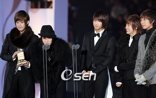 '2007 Mnet KM Music Festival'이 17일 저녁 잠실 실내체육관에서 열렸다. 올해로 9회째를 맞이하는 MKMF는 올 한해 한국 대중 음악계를 총결산하고 즐기는 대규모 음악 축제이자 음악 시상식이다. 남자 그룹 부문 신인상을 받은 FT 아일랜드가 눈물을 글썽이며 수상소감을 밝히고 있다. /황세준 기자 storkjoon@osen.co.kr