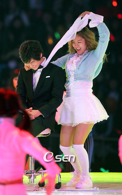 '2007 Mnet KM Music Festival'이 17일 저녁 잠실 실내체육관에서 열렸다. 올해로 9회째를 맞이하는 MKMF는 올 한해 한국 대중 음악계를 총결산하고 즐기는 대규모 음악 축제이자 음악 시상식이다. 여자 그룹 부문 신인상 후보에 오른 소녀시대가 시상자 김범 앞에서 섹시댄스를 선보이고 있다. /황세준 기자 storkjoon@osen.co.kr
