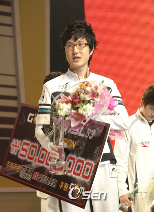 최고의 프로토스라고 불리는 '혁명가' 김택용(18, MBC게임)을 누르고 최연소 MSL 우승을 차지한 겁없는 신예 박성균(16, 위메이드)의 얼굴에는 미소가 가득했다. 17일 서울 광진구 능동 어린이대공원 돔아트홀에서 열린 '곰TV MSL 시즌3' 결승전서 박성균은 강력하다 못해 무시무시한 메카닉 전략을 앞세워 김택용을 3-1로 누르고 대망의 첫번째 우승컵을 품에 안았다. 9년 e스포츠사에 새로운 역사가 써지는 순간이었다. 다음은 최연소 우승을 차지한 박성균과 일문일답. - 우승 소감은. 일단은 정말 기쁘다. 연습하면서 많이 어려웠었다. 이기게 된 사실이 신기하기도 하다. GG를 받는 순간 이겼다라는 생각이들면서 기쁨을 감출수가 없었다. - 경기 전 우황청심원을 복용했는데. 경기장에 오니 너무 떨렸다. 감독님이 우황청심원을 주셨는데 기분이 한결 나아졌다. - 강적 김택용을 상대로 거둔 승리였다. 모든 이들이 김택용 선수의 우세를 점치는 것을 보고 이기는 모습을 보여주고 싶었다. 우승에 대한 욕심보다는 승리에 대한 욕심이 컸다. - 최연소 우승 기록을 세웠다. 기록이 계속 남아있으면 좋겠다. - 타이밍, 운영 메카닉 운영이 돋보였다. 준비하면서 어려움이 많았다. 빌드를 제대로 정하지도 못하고, 어려운 점이 많았다. 팀의 프로토스 선배들이 벌쳐를 사용하라는 충고를 해줬는데 그게 잘 통해서 1세트부터 쉽게 풀어갈 수 있었다. - 마지막 전장이 프로토스에게 유리하다는 '로키 Ⅱ'였다.우승을 확신한 순간은. 마지막 캐리어를 제압하면서 '우승했구나'라는 생각을 했다. 프로토스에게 좋은 전장이었지만 김택용 선수가 초반 정찰에 실패한 점이 크게 작용한 것 같다. 가장 어려웠던 경기도 4경기였다. - 제일 존경하는 선수는. 같은 팀의 이윤열 선수도 존경하지만 가장 존경하는 선수는 임요환이다. 시간이 지나도 열정적으로 경기를 하는 모습에 감동을 많이 받는다. 꼭 따라가고 싶은 선배다. - 대단한 선수들을 물리치고 결승에 올라갔었다. 처음에는 압박감이 있었다. 하지만 경기를 계속하면서 똑같은 사람이다라는 생각을 했다. - 상금 5천만원은. 부모님을 드리거나 저축을 하겠다. - 앞으로 어떤 선수가 되고 싶은지. 앞으로 프로리그에서 상대가 내 이름을 확인할때 '왜 박성균이야' 라는 소리를 듣고 싶다. 앞으로 열심히 하다보면 임요환 선배와 같은 선수가 되겠다. 끝까지 최선을 다하겠다. - 마지막으로 팬들에게 한 마디를 한다면. 응원와주셔서 정말 많은 힘이 됐다. 앞으로도 최선을 다하는 박성균의 모습을 보여드리겠다. scrapper@osen.co.kr