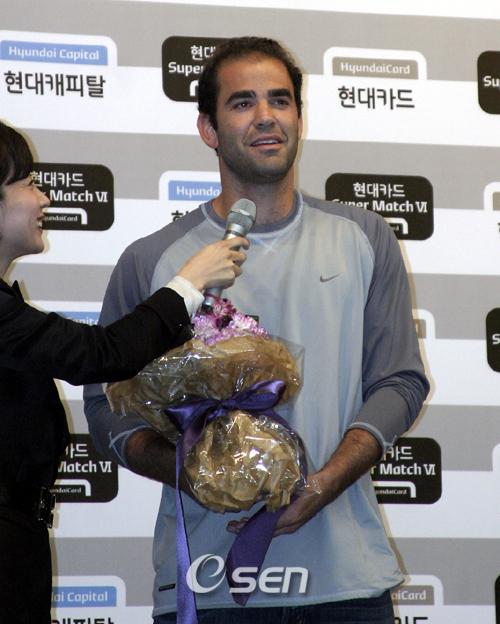 '레전드' 피트 샘프라스(36)가 로저 페더러(26)와의 맞대결에 앞서 "큰 도전이 될 것이다"고 기대감을 나타냈다. 19일 서울 여의도 현대카드 본사에서 열린 방한 기자회견에서 샘프라스는 "은퇴한 지 5년이 지나 세월의 벽을 느낀다. 하지만 자존심 대결이다. 큰 도전이 될 것이다"고 각오를 밝혔다. 이어 "처음 한국을 방문했다. 페더러가 나를 불러줘 기분이 좋다"고 밝힌 샘프라스는 "그래도 나나 페더러 모두 자존심이 세기 때문에 서로 이기려고 노력할 것이다"고 말했다. 현재 테니스계에서 자신과 비교되고 있는 페더러를 두고 '누가 최고라고 생각하느냐'는 질문에 그는 "언급하기 어렵다. 장담하건대 페더러가 앞으로 테니스의 모든 기록을 갈아 치울 것이다"고 밝혔다. "걸림돌이라면 프랑스오픈이지만 이것도 그는 극복할 것이다"고 칭찬했다. 한편 여자친구와 같이 온 페더러와 달리 혼자 온 샘프라스는 "13시간 동안 비행기를 타고 와야 한다. 아내가 아이들을 돌보기 힘들어 혼자 왔다"고 말했다. "또 페더러와의 경기에 집중해야 하지 않겠느냐"며 농담도 덧붙였다. 이들의 맞대결은 20일 오후 잠실 실내체육관에서 펼쳐진다. 7rhdwn@osen.co.kr