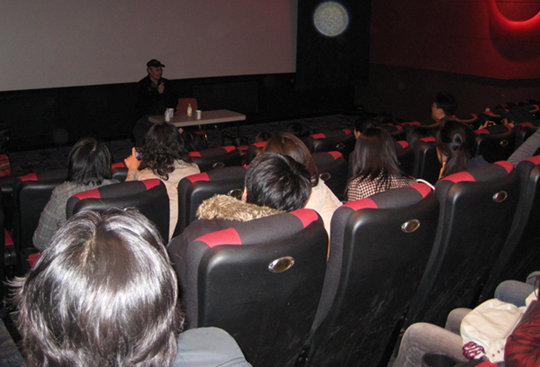 이명세 감독이 자신의 미스테리 멜로 영화 'M'을 들고 최근 관객들과 다시 만났다. 아쉽게 'M'의 일반 상영은 일찍 끝났지만 팬들의 성원으로 서울 씨너스 센트럴점에서 장기 상영 1주차에 들어간 것을 기념해서다. 갑자기 몰려든 한파에 극장가는 썰렁했지만 이 감독이 관객과의 대화를 마련한 'M' 상영관은 빈 좌석없이 가득 들어찼다. 제작사에 따르면 이날 객석에는 대구와 울산 등의 지방은 물론이고 멀리 일본에서까지 팬들이 찾아왔다는 것. 이 감독은 무릎에 물이 차 목발을 짚어야하는 상황에서도 자신을 찾아온 팬들을 실망시키지 않기위해 영화 상영후 무대에 올랐고, 긴 시간 관객들의 질문에 열정으로 가득찬 답변을 들려줬다. 이날 관객 상당수는 몇번씩 'M'을 관람한 마니아 팬들이어서 영화 속 캐릭터, 미술, 조명, 사운드 등 전문가 못지않은 심도 깊은 질문을 쏟아냈다. 상영관 사정으로 미처 끝내지 못한 질문 세례가 극장 로비까지 이어졌다는 게 제작사의 전언이다. mcgwire@osen.co.kr