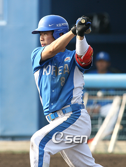 대표팀 좌완 전병호(34, 삼성)가 불안한 모습을 드러냈다. 전병호는 21일 오키나와 온나의 아카마 구장에서 열린 평가전에 상비군의 선발 투수로 마운드에 올라 3회 정근우에 좌월 3점 아치를 허용하는 등 4이닝 7피안타(1피홈런) 2볼넷 6실점으로 고전했다. 이날 경기는 10-10 무승부. 대표팀은 0-1로 뒤진 3회 1사 1,3루서 민병헌과 이대형의 연속 적시타로 2점을 뽑은 뒤 정근우가 상대 선발 전병호를 상대로 좌측 담장을 넘는 스리런을 작렬했다. 이어 강민호의 1타점 중전 적시타로 전세를 뒤집었다. 5회 1사 3루서 이택근의 중전 안타로 1점을 보탠 뒤 6회 2점, 7회 1점을 추가했다. 대표팀 3번 지명 타자로 나선 정근우는 좌월 스리런을 포함 4타수 2안타 3타점 2득점을 기록했다. 톱타자로 나선 민병헌과 이대호도 2안타씩 때리며 타격감을 조율했다. 8회 마운드에 오른 오승환은 1이닝 2피안타 1탈삼진 1실점을 기록했다. 상비군은 2회 김현수의 우중간 2루타로 만든 1사 2루서 김주형의 좌중간을 가르는 1타점 2루타로 선취 득점에 성공했다. 1-6으로 뒤진 3회 대거 6점을 뽑아낸 뒤 7회 장성호의 우월 투런 아치와 패스트볼로 3점을 얻었다. what@osen.co.kr 정근우.
