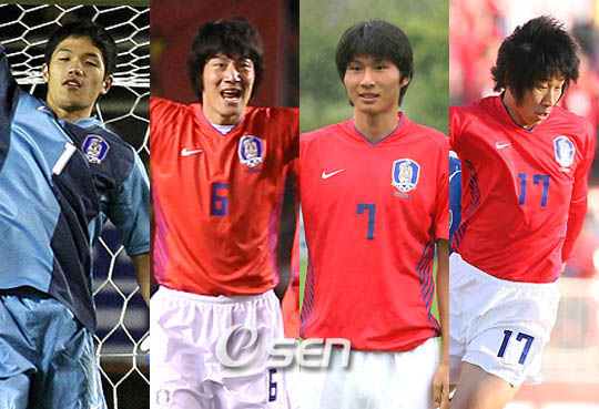 역대 올림픽대표팀은 아시아 예선을 통해 새로운 스타들을 발굴해냈다. 맨체스터 유나이티드에서 뛰고 있는 박지성도 올림픽팀을 통해 자신의 존재를 알렸다. 설기현, 이영표 등도 올림픽팀에서 자신의 기량을 한층 끌어올렸다. 이번 올림픽 예선을 치르면서도 새로운 예비 스타들이 많이 나타났다. 이같은 스타 발굴을 통해 올림픽팀은 결국 목표였던 6회 연속 본선 진출을 이루어냈다. 우선 가장 눈에 띄는 선수는 주전 골키퍼 정성룡(포항)이다. 정성룡은 최종예선을 통해 기량이 급성장했다. 그는 안정된 모습과 판단 능력을 보여주며 국가대표급으로 발돋움했다. 이운재가 불미스러운 일로 사실상 대표팀에서 은퇴한 상황에서 김용대(광주)와 대표팀 주전 골키퍼 자리를 놓고 경쟁할 수준에까지 오른 것이다. 김진규(서울)와 강민수(전남)로 이어지는 수비라인도 올림픽팀을 통해 단련됐다. 이들은 아시안컵에도 출전해 국가대표팀 주전 수비수로서 입지를 다졌다. 강민수의 경우 경험이 부족해 집중력이 떨어지는 모습을 가끔 연출하기도 하지만 점차 좋은 기량을 선보이고 있다. 이근호(대구)도 올림픽팀이 배출해낸 스타다. 지난해까지만 하더라도 올림픽팀에서도 이근호의 존재를 전혀 몰랐으나 이제는 전국민이 다 아는 스타로 성장했다. 저돌적인 돌파와 활동량을 바탕으로 그라운드를 누비는 이근호 역시 국가대표팀에 선발되어 아시안컵 무대를 누볐다. bbadagun@osen.co.kr 정성룡-김진규-강민수-이근호.