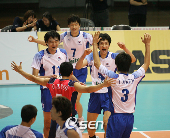 한국 남자배구가 2007 월드컵서 첫 승을 거두었다. 유중탁 감독이 이끄는 남자 배구 대표팀은 23일 오후 일본 히로시마에서 열린 2007 국제배구연맹(FIVB) 월드컵 5차전 튀니지와 경기서 문성민(22득점)과 센터 신영수(23득점)의 활약에 힘입어 세트 스코어 3-2(25-17 23-25 21-25 25-22 15-9)로 극적인 승리를 거두었다. 이로써 한국은 4연패 끝에 첫 승을 올렸다. 한국은 1세트부터 튀니지를 강력하게 몰아쳤다. 지난 22일 러시아와 경기서 아껴두었던 문성민을 투입하며 총력전을 폈다. 문성민은 기대에 걸맞게 활기찬 플레이로 제 몫을 했다. 또, 신영수와 신예 박준범은 블로킹에서 튀니지를 압도, 1세트를 25-17로 따냈다. 2세트서는 튀니지가 힘을 냈다. 튀니지는 서브 에이스 포함해 날카로운 백어택 공격으로 차근차근 점수를 더했고 이어 블로킹까지 호조를 보이며 11-6으로 앞서갔다. 그러나 한국은 문성민이 파워 넘치는 공격으로 추격을 시작했다. 그리고 신영수도 득점에 가세하며 22-23까지 따라 잡았으나 뒤집지 못하고 2세트를 23-25로 내주고 말았다. 세트스코어 1-1서 맞이한 3세트서 양팀은 팽팽한 접전을 이어갔다. 12-12 동점서 먼저 힘을 낸 쪽은 튀니지였다. 템포 조절을 통한 스파이크 공격과 한국의 실수를 묶어 튀니지는 17-13으로 앞서갔다. 한국은 김요한을 투입해 반전을 노렸지만 서브 범실과 상대 블로킹을 넘지 못하는 등 뒷심 부족을 드러내며 3세트마저 21-25로 뺐겼다. 4세트 초반서도 팽팽한 경기는 계속됐다. 문성민과 박준범은 튀니지의 코트에 맹폭을 가하며 힘을 냈다. 결국 후반 박준범의 블로킹으로 점수를 벌리는 데 성공한 한국은 유광우의 날카로운 토스에 이은 하경민의 중앙 속공과 문성민의 오픈 공격으로 25-22로 따내 세트스코어 2-2를 만들었다. 최종 5세트서 한국은 좋은 출발을 보였다. 한국은 하경민의 날카로운 공격과 함께 튀니지의 범실을 묶어 7-3으로 앞서 나갔다. 특히 신영수와 박준범 등 어린 선수들이 침착하게 공수에 걸쳐 활약을 보였고 결국 한국은 15-9으로 5세트를 따내며 승리를 거두었다. 10bird@osen.co.kr
