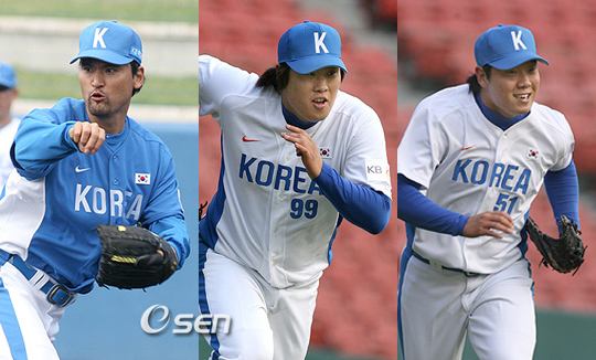 진짜 무대에서 잘하려나. 오는 12월 1일부터 대만 타이중에서 벌어지는 베이징올림픽 아시아 예선을 앞둔 야구대표팀이 오키나와 온나 전지훈련 평가전을 모두 마친 가운데 마운드에서 확실한 카드가 나오지 않고 있다. 평가전 결과 기대했던 투수들이 모두 불안한 구위를 보여주고 있다. 특히 대만과 일본전 선발투수 후보들로 꼽히고 있는 박찬호 류현진 류제국이 믿음을 보여주지 못했다. 김경문 감독과 선동렬 수석코치가 가장 고심하고 있는 대목이다. 박찬호는 선발과 미들맨으로 4경기에 등판, 11⅓이닝 8피안타 4실점했다. 2승을 올렸고 중간으로 나선 3경기에서는 무실점으로 호투했다. 그러나 선발투수로 나선(20일) 경기에서 3이닝 4실점했다. 투구수가 많아지자 불안한 모습이었다. 류현진은 2경기에 선발 등판해 9이닝 동안 10안타 8사사구 7실점했다. 방어율은 7.00. 첫 경기에서는 4이닝 무실점으로 잘 던졌으나 지난 24일 마지막 경기에서는 5이닝 7실점했다. 직구만 던졌기 때문에 성적은 큰 문제가 되지 않았다. 다만 직구 구위 자체가 믿음직하지 못했다는 데 문제가 있다. 류제국 역시 마찬가지. 3경기에 등판해 11이닝 동안 9실점, 방어율이 7.36에 이른다. 1회에 불안한 모습을 노출해 대만전 필승 선발 기용을 주저하게 만들고 있다. 마무리를 맡고 있는 오승환(삼성)도 5경기에 등판, 1패1세이브를 기록했다. 4⅔이닝 동안 2실점, 방어율은 3.86. 팽팽한 승부가 벌어질 경우 불안할 수 밖에 없는 수치이다. 대표팀 투수들 가운데 유일한 2점대 방어율을 기록한 투수는 좌완 장원삼(현대). 6경기에 등판해 8⅔이닝 동안 2실점, 방어율 2.08를 기록하고 있다. 좌완 릴리프로 유용하게 쓸 수 있을 것으로 보인다. 그러나 김경문 감독은 대만으로 건너가면 투수들의 구위가 정상을 되찾을 것으로 보고 있다. 오키나와에서는 한 팀만 상대했고 투수들이 자신의 구위를 테스트하는 경향도 있었기 때문에 성적이 그리 중요하지 않을 수도 있다. 더욱이 '전투 모드'에 돌입하는 대만으로 건너가면 분위기도 확 바뀌기 때문에 투수들의 컨디션도 빠르게 정상화 될 가능성도 크다. 오키나와에서 걱정만 안겨주었던 투수들이 대만에서 정상 모드를 찾을 수 있을지 주목된다. sunny@osen.co.kr 박찬호-류현진-류제국.