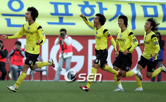 "골대 안으로 넣겠다는 생각만 했다". 25일 전남 광양구장에서 열린 2007 하나은행 FA컵 결승 1차전서 후반 41분 짜릿한 역전골을 성공시킨 곽태휘(27, 전남)는 "무조건 골대 안으로 찬다는 생각뿐이었다"고 운을 뗀 후 "그런 생각이 골을 넣을 수 있었던 기회였다고 생각한다"고 밝혔다. 이어 그는 "항상 응원해주는 팬들이 너무나도 고맙다"면서 "특히 서울에서 내려와서 끝없이 힘을 준 팬들과 함께 기쁨을 나누고 싶다"며 고마움을 나타냈다. 올 시즌 중반 FC 서울에서 전남으로 이적하며 아쉬움이 많이 남았던 곽태휘는 "서울에서 이적한 것은 아직도 가슴에 많이 남아있다"면서 "정확하게 표현할 수 없지만 항상 잘해야겠다는 생각을 하고 있다"고 서운한 감정을 드러냈다. 곽태휘는 "전반에 경기가 안풀려도 후반에 잘할 수 있다는 마음을 굳게 먹고 있었다"면서 "감독님께서 후반 시작되기 전 자신있게 하라는 말을 하셨다. 그런 주문을 믿고 열심히 뛴 것이 승리의 요인이라고 생각한다"고 말했다. 한편 지난해 결혼한 곽태휘는 "가정을 가지며 안정이 됐다"면서 "신혼이기 때문에 연애하는 마음으로 즐겁게 살고 있다. 그런 것이 큰 도움이 되는 것 같다"고 덧붙였다. 10bird@osen.co.kr 곽태휘(왼쪽)가 직접 프리킥을 골로 연결, 3-2로 재역전시킨 뒤 환호하며 질주하고 있다. /광양=황세준 기자 storkjoon@osen.co.kr