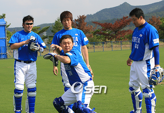 전쟁은 아직 끝나지 않았다. 내달 1일부터 대만 타이중에서 열리는 올림픽 아시아 예선전의 주전 마스크를 노리는 '베테랑 3인방' 박경완(35, SK)-진갑용(33, 삼성)-조인성(32, LG)이 두 번째 생존 경쟁에 돌입했다. 지난 24일 대표팀의 마지막 평가전이 끝난 뒤 '젊은 피' 강민호(22, 롯데)가 탈락해 경쟁률이 다소 낮아졌으나 우열을 가리기 힘들 정도로 뛰어난 활약을 펼쳐 안방 마님의 주인공을 점치기 어려운 상황. 김경문 대표팀 감독은 "강민호와 베테랑 3명 가운데 1명을 최종 선발할 계획이었으나 고참들이 좋은 모습을 보여줘 강민호를 제외했다"고 밝혔다. 소속팀 SK의 창단 첫 정상을 이끈 박경완은 이번 평가전에서 타율 3할8리(13타수 4안타) 1홈런 3타점 3득점으로 화끈한 방망이를 자랑했다. 투수 리드는 국내 최고로 손꼽힐 정도. 다만 송구 능력이 떨어지는 것과 국제 대회 경험이 부족하다는 것이 흠. 발빠른 일본 타자들을 잠재우기 위해 강한 어깨가 필수. 지난 2000년 시드니 올림픽 대표로 출전한 박경완은 타율 2할8푼6리 2안타 1타점 1득점을 거뒀다. 포수 가운데 국제 대회 경험이 가장 풍부한 진갑용은 이번 대회에서도 주전 마스크를 쓸 각오. 1998년 방콕 아시안 게임부터 지난 해 월드베이스볼클래식(WBC)에서 우리 나라가 좋은 성적을 거둘 수 있었던 것도 굳건히 안방을 지킨 진갑용 덕분. 이번 평가전에서도 타율 3할8리(26타수 8안타) 3타점 3득점을 기록했다. 투수 리드가 뛰어난 박경완과 강한 어깨가 돋보이는 조인성에 비해 뚜렷한 강점은 없으나 공수에서 가장 안정된 포수라는 것이 야구 전문가들의 귀띔이다. 18일 소속팀 LG와 4년간 최대 34억 원에 FA 계약을 체결한 조인성은 '앉아쏴'라는 별명처럼 강한 어깨가 주무기. 올 시즌 페넌트레이스에서 프로 입단 후 가장 높은 타율(2할8푼2리)로 화끈한 안방마님의 위력을 대표팀에서도 유감없이 드러냈다. 타율 3할(20타수 6안타) 1홈런 7타점 3득점. 진갑용과 더불어 국제 대회 출전 경험이 많은 것이 큰 장점이다. 과연 누가 올림픽 대표팀의 안방 마님으로 경기에 나설 것인지 지켜볼 일이다. what@osen.co.kr 포수 4인방 진갑용 강민호 박경완 조인성이 오키나와서 나란히 훈련할 때 모습.
