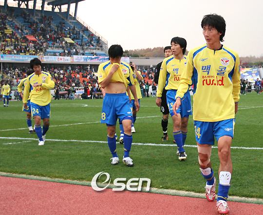 전남 드래곤즈가 '제철가 더비'로 불리웠던 2007 하나은행 FA컵 결승 1차전을 승리로 장식하며 올 시즌 K리그 준우승팀 성남 일화에도 불똥이 튀고 있다. 지잔 25일 광양 전용구장에서 열린 경기에서 홈팀 전남이 K리그 챔피언 포항을 3-2로 제압하며 지난 시즌에 이어 FA컵 2연패를 향한 힘찬 걸음을 내딛었다. 반면 한국 축구사상 첫 사례로 기억될 K리그-FA컵 '더블' 을 노린 포항의 목표도, 정규리그서 1위를 차지하고도 챔피언 결정전에서 내리 져 포항에 우승컵을 내준 2위 성남 일화에도 좋지 않은 결과였다. 남들 잔치였지만 성남이 울 수 밖에 없는 한 가지 큰 이유가 있다. 바로 FA컵 우승 향방에 따라 다음 시즌 AFC 챔피언스리그 출전권 여부가 나뉘기 때문. 아쉽게 K리그 준우승에 머물고, 올 시즌 챔피언스리그에서 4강 진출에 그쳤던 성남의 입장에선 포항이 무조건 FA컵까지 쟁취해야 리그 준우승팀 자격으로 내년 아시아 무대에 나설 수 있다. 언제나 한국 축구를 넘어 아시아 무대를 제패한 뒤 세계를 향해 도전하겠다는 의지를 천명해온 성남이지만 모든 목표가 불투명한 상황 속에 포항의 FA컵 우승은 한 줄기 남은 유일한 희망이었다. 내심 챔피언 결정전에서 자신들에게 쓰디쓴 패배의 잔을 들게 했던 포항의 승리를 기대했던 성남은 포항의 이날 패배와 함께 같은 아픔을 느끼게 됐다. yoshike3@osen.co.kr 올 시즌 정규리그 챔피언결정전 2차서 패한 뒤 씁쓸히 경기장을 떠나는 성남 선수들.