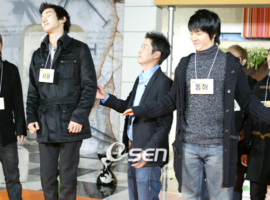 명 MC 신동엽과 슈퍼주니어 13인의 멤버가 함께 만드는 SBS TV '일요일이 좋다'-'인체탐험대'의 제작진이 27일 오후 경기도 부천체육관에서 녹화 현장을 공개했다. 그 동안 모르고 지냈던 우리 몸의 신비로운 작용들을 재미있는 형식에 담아 알아보는 프로그램이다. 슈퍼주니어의 시원과 동해가 깡통 위에서 눈을 감고 중심을 잡는 미션을 수행하고 있다. /부천=강희수 기자 100c@osen.co.kr