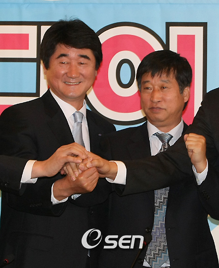 역시 한국 남자배구를 주름잡는 두 명장다웠다. 삼성화재 신치용(52) 감독과 현대캐피탈 김호철(51) 감독의 팽팽한 신경전은 여전했다. 29일 오전 서울 종로구 소공동 플라자호텔에서 열린 NH농협 2007-2008 V리그 미디어데이 행사에 참석한 신 감독과 김 감독은 약 1시간 가량 진행된 인터뷰 내내 화기애애한 농담 속에서도 뼈있는 한마디씩을 주고받으며 라이벌 의식을 드러냈다. 이날 두 감독들은 모두 '다른 팀은 몰라도 네가 이끄는 팀에는 지지 않겠다'는 속내를 간접적으로 드러내기도 했다. 먼저 포문을 연 쪽은 입심 좋기로 소문난 신치용 감독. 신 감독은 “전력이나 여러 가지 평가에서 나오다시피 쉽지 않은 시즌이 될 것”이란 예상을 하면서도 “용병이 없는 팀(현대캐피탈)이 가장 강하지만 어떻게 질 수 있겠느냐”며 장내의 폭소를 자아냈다. 이에 김호철 감독은 “전체적으로 삼성화재가 강팀 후보에서 제외되는데 삼성화재는 누구도 쉽게 이길 수 있는 상대가 아니다. 가장 어렵고 무서운 팀이란 생각”이라며 경계심을 보이면서도“당연히 우리가 이겨야 할 것”이라고 되받아쳤다. 최악의 상황 속에서도 늘 여유를 보이며 조금의 걱정조차 없을 것 같던 두 감독들. 그러나 우려하는 부분도 분명 있었다. 신 감독은 “신장이 작고, 평균 연령이 높기 때문에 라운드를 치를수록 체력적인 부담이 높아진다”며 소속팀의 약점을 설명했다. 전체적으로 고른 전력을 갖췄다는 평가를 받는 김 감독도 마찬가지. “모든 팀에 장단점이 있겠지만 우린 용병 문제가 아직 해결되지 않았고, 주전 몇몇의 컨디션이 회복되지 않았다”고 걱정을 드러냈다. 하지만 신 감독과 김 감독은 나란히 “팬들에게 즐거움을 줄 수 있는 배구를 펼치고 싶다”면서도 “최선을 다해 준비한 만큼 꼭 우승하고 싶다”는 각오를 표출했다. yoshike3@osen.co.kr