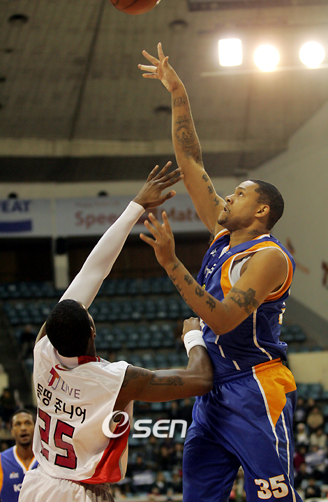 KT&G가 SK를 꺾고 단독 2위로 뛰어 올랐다. 유도훈 감독이 이끄는 안양 KT&G는 30일 서울 잠실학생체육관에서 열린 2007~2008 SK 텔레콤 T 프로농구 서울 SK와 경기서 마퀸 챈들러(25득점, 9리바운드)를 비롯해 선수 전원의 고른 활약에 힘입어 85-82로 승리를 거두었다. 이날 승리로 KT&G는 11승6패를 기록하며 4연승으로 단독 2위에 올랐다. SK와 KT&G는 외국인 선수들을 이용한 확률높은 골밑 공격을 통해 팽팽하게 경기를 풀어갔다. SK는 1쿼터 막판 방성윤과 이병석의 스틸에 이은 연속 득점과 래리 스미스의 덩크슛에 힘입어 22-19로 1쿼터를 마쳤다. KT&G 주희정의 3점슛으로 시작된 2쿼터도 접전이 이어졌다. 그러나 SK와 KT&G는 턴오버를 주고받으며 많은 득점을 올리지 못했다. 특히 SK는 2쿼터 15득점 중 방성윤이 홀로 12점을 올리며 맹활약했지만 팀 동료들의 지원을 받지 못해 37-40으로 뒤진 채 전반을 마쳤다. 근소하게 앞서던 KT&G는 3쿼터 초반 골밑 우위를 바탕으로 마퀸 챈들러가 연속 득점에 성공했다. 기세가 오른 KT&G는 출전 선수들의 고른 활약을 통해 3쿼터 5분경 54-44로 점수를 벌렸다. SK는 3쿼터 6분경 KT&G 유도훈 감독이 판정 불만으로 강하게 어필하며 벤치 테크니컬 파울을 받는 사이 트래비스 개리슨과 방성윤의 연속 득점과 종료 직전 터진 김태술의 3점슛에 힘입어 58-62로 추격에 성공하며 3쿼터를 마쳤다. 기세가 오른 SK는 4쿼터 시작하며 집중력이 흐트러진 KT&G를 공략해 4쿼터 4분50초경 69-68로 역전에 성공했다. 이후 양팀은 승리를 위해 치열한 한 점 차 공방을 시작했다. 하지만 이후 힘을 낸 쪽은 KT&G였다. T.J 커밍스가 골밑에서 득점과 함께 리바운드를 따내며 4쿼터 8분경 78-75로 앞서 나갔고 이어 황진원이 쐐기를 박는 3점슛을 터트리며 결국 KT&G가 승리를 거두었다. ■ 30일 전적 서울 SK 82 (22-19 15-21 21-22 23-23) 85 안양 KT&G 10bird@osen.co.kr KT&G 챈들러가 SK 개리슨의 마크 위로 훅슛을 시도하고 있다. /잠실학생체=황세준 기자 storkjoon@osen.co.kr