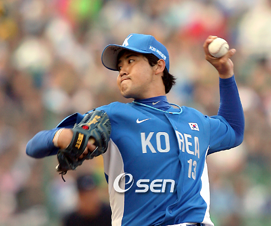 2008 북경올림픽야구 아시아 예선 한국과 대만의 경기가 1일 대만 인터콘티넨탈구장에서 벌어져 한국이 이종욱의 역전 3점 홈런과 류현진 박찬호 장원삼 정대현으로 이어지는 깔끔한 계투로 5-2로 승리를 거두었다. 9회말 원포인트 릴리프로 마운드에 올라 아웃카운트 하나를 잡고 내려간 장원삼이 힘차게 공을 뿌리고 있다./타이중=손용호 기자spjj@osen.co.kr