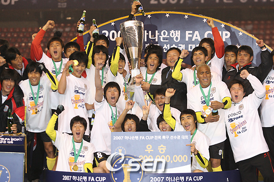 올 한 해 한국 축구 대미를 장식한 FA컵을 쟁취한 주인공은 다름아닌 전남 드래곤즈였다. 2일 오후 3시 포항 스틸야드에서 펼쳐진 2007 하나은행 FA컵 결승 2차전에서 전남은 2골을 성공시킨 송정현과 산드로의 추가골에 힘입어 3-1 승리, 2연승으로 우승컵을 가져왔다. 지난 주말 안방인 광양 전용구장서 열린 1차전서 3-2로 짜릿한 재역전승을 거뒀던 전남은 1승을 추가하며 국내 축구 사상 처음으로 2시즌 연속 FA컵을 평정하는 역사를 창조했다. 정규리그 내내 부진한 행보로 비난의 중심에 섰던 전남은 이번 FA컵을 통해 그간 겪어온 모든 설움을 떨쳐낼 수 있었다. 우승까지 다다른 전남의 행보가 포항과 판박이었다는 점이 흥미로웠다. 올 시즌 정규리그서 5위에 오른 뒤 6강 플레이오프-준 플레이오프-플레이오프-챔피언 결정전을 거치며 우승을 차지한 포항처럼 전남도 토너먼트로 치러진 FA컵에서 승리를 거듭했다. '단기전 매직'이란 표현이 결코 지나치지 않을 정도였다. 자존심 강하기로는 둘째 가라면 서러운 허정무 감독은 적지에서 ‘매직’의 지존으로 떠오른 파리아스 감독을 꺾으며 위상을 높였다. yoshike3@osen.co.kr