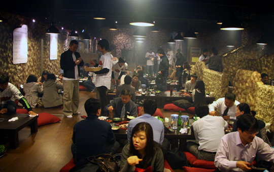 롯데 자이언츠 선수단이 병상에 누워 있는 임수혁(38)의 쾌유를 기원하며 지난 3일 부산 해운대 우동의 고성범 참숯 생고기에서 일일 자선 행사를 열었다. 롯데 선수단은 지난 2000년 4월 18일 경기 도중 쓰러진 뒤 뇌사 상태에 빠진 임수혁을 위해 해마다 행사를 개최하고 있다. 앞치마를 두른 선수들이 음식을 나르는 모습은 다소 낯설었지만 선배를 돕겠다는 의지는 대견스러울 정도. 지난해에 비해 손님이 적지 않을까 우려 섞인 목소리도 있었으나 기우에 불과했다. 행사가 시작된 오후 7시부터 손님들이 몰려 선수들은 즐거운 비명을 질렀다. 밀려 오는 손님을 맞이하며 선수들은 굵은 땀방울을 쏟아 냈지만 표정 속에 지친 기색이라고는 찾아볼 수 없었다. 상조회 신임 총무 조성환(31)은 서빙하느라 바쁜 후배들을 위해 김밥을 챙겨주는 자상함도 보여줬다. 다른 선수들은 구단 캐릭터 상품과 대형 사인볼을 파느라 여념이 없었다. 염종석(34), 손민한(32), 주형광(32) 등 고참 선수들은 상품 판매를 위해 팔을 걷어붙였다. 유명 선수들이 직접 나선 덕분일까. 상품은 순식간에 팔려 버렸다. 롯데 갈매기마당 회원들은 임수혁의 완쾌를 바라며 저마다 작은 정성을 모은 성금을 정수근(30) 신임 상조회장에게 전달했다. 정수근 상조회장은 "손님들이 적지 않을까 걱정했는데 많은 분들이 도와주셔서 너무 고맙다. 정말 감동적이다. 하루 빨리 수혁이 형이 쾌유하길 바란다"고 전했다. what@osen.co.kr 롯데 자이언츠 제공. .