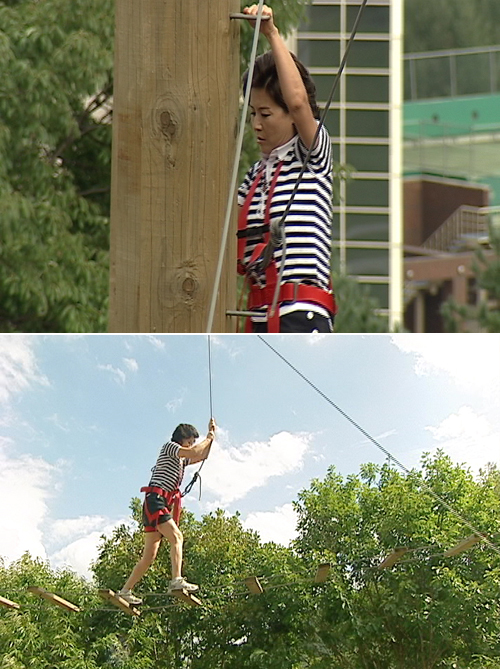 중견 탤런트 박정수(54)가 11m높이의 흔들다리를 건너는 아찔한 도전을 감행했다. 채널 스토리온의 ‘다이어트 워’의 MC를 맡고있는 박정수는 3주차 도전과제로 사람이 최대의 공포를 느낀다는 높이인 11m 상공의 흔들다리를 왕복하는 과제를 제시했다. 하지만 참가자들이 고소공포증 등의 핑계로 과제를 거부하자 자신이 직접 11m 상공의 흔들다리를 가뿐이 건너며 참가자들의 용기를 북돋웠다. 박정수의 솔선수범에 자극을 받은 참가자들 역시 전원 과제를 성공리에 마치며 ‘처음의 다이어트에 대한 굳은 의지를 잃지 말자’는 다짐을 했다고. 박정수는 “당일 컨디션이 좋지 않았지만, 참가자들의 나태해진 모습을 보니 이대로는 안되겠다는 생각이 들어 직접 나서게 됐다”면서 “막상 올라가니 무서웠지만 참가자들의 멘토가 되고자 프로그램에 참여했던 만큼 나 역시 자신과의 싸움을 이겨내고 초심으로 돌아가자는 생각에 최선을 다했다”고 밝혔다. 방송은 11일 밤 11시. yu@osen.co.kr
