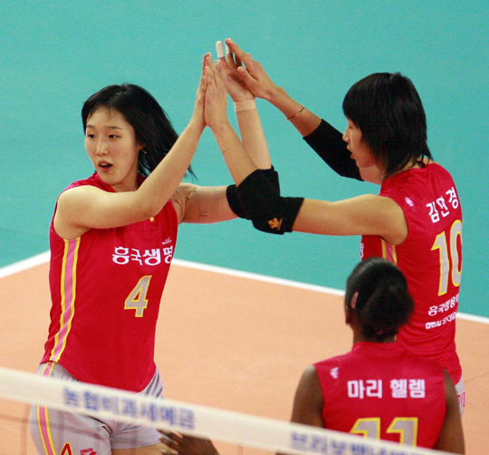 흥국생명이 GS칼텍스를 꺾고, V리그 2승째(1패)를 기록했다. 12일 오후 인천 도원 실내 체육관에서 열린 NH농협 2007-2008 V리그 여자부 경기에서 흥국생명은 GS칼텍스를 3-1(25-19 25-16 21-25 25-20)로 제압했다. GS칼텍스는 2승 2패. GS칼텍스 입장에선 리베로 남지연의 공백이 컸다. 팀 연습 도중 왼손 새끼 손가락을 부상당한 주장 남지연이 빠지자 수비 조직에서 계속 문제를 드러냈다. 예상대로 첫 세트부터 흥국생명의 우세속에 경기가 전개됐다. 좌우 쌍포 김연경과 황연주가 차곡히 득점을 쌓아올리며 흥국생명은 기세를 올려나갔다. GS칼텍스는 하께우와 배유나가 각각 5점씩 올리며 분전했지만 수비 불안을 떨쳐내지 못했다. 16-15까지 앞섰던 GS칼텍스는 김연경에게 백어택을 내줘 역전을 허용한 뒤 무너졌다. 흥국생명의 줄기찬 공격은 2세트에서도 계속됐다. 1세트서 10점을 올렸던 김연경은 여기서도 5득점, 센터 전민정(4점)과 함께 활발한 공격을 이끌어 나갔다. GS칼텍스는 센터 정대영과 하께우를 내세워 반격을 시도했지만 단 한차례도 리드를 잡지 못한 채 또다시 세트를 내줘 불안감을 드리웠다. 3세트는 분위기가 반전됐다. 속공과 블로킹에서 좋은 플레이를 한 하께우의 활약속에 흐름을 잡은 GS칼텍스는 차곡히 점수를 추가, 14-7로 앞서나갔다. 그러나 흥국생명은 만만치 않았다. 조직력 불안을 보인 흥국생명은 곧바로 전열을 가다듬고, 추격에 나서 한 포인트씩 추가, 어느새 17-19까지 따라붙었다. 여유있게 경기를 풀어가던 GS칼텍스는 흥국생명의 거센 반격이 이어지자 당황한 나머지 19점에서 한참 동안 묶여있는 모습을 보이기도 했다. 다행히 GS칼텍스에겐 배유나의 한방이 있었다. 배유나의 백어택으로 20점대로 올라가자 안정을 찾은 GS칼텍스는 하께우가 깔끔하게 마무리해 세트 스코어를 1-2로 만회했다. 4세트는 팽팽한 랠리가 이어졌다. 흥국생명이 점수를 올리면 GS칼텍스가 곧바로 추격하는 양상. 남지연 대신 투입된 최유리의 수비력이 살아나자 박빙의 승부가 유지될 수 있었다. 하지만 랠리는 6-6에서 끝났다. 흥국생명은 김연경의 시간차 공격으로 앞선 뒤 하께우의 범실, 배유나의 공격 실패로 내리 포인트를 올려 리드를 잡았다. 한번 주도권을 뺏긴 GS칼텍스는 때늦은 추격전을 시작했지만 17-10까지 스코어가 벌어져 전세는 이미 흥국생명으로 넘어간 뒤였다. 잦은 범실로 위기를 넘기지 못한 GS칼텍스와는 달리 흥국생명은 막판 황연주의 빠른속공과 마리의 강타에 힘입어 경기를 깔끔하게 마무리했다. yoshike3@osen.co.kr KOVO 제공.