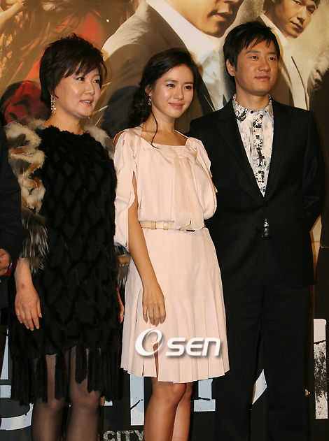 손예진과 김명민이 소매치기파의 리더와 형사반장으로 분한 영화 '무방비도시'의 제작발표회가 13일 용산 CGV에서 열렸다. 손예진이 국제 소매치기 조직을 이끄는 섹시팜므파탈 백장미역을 맡았고 김명민은 천부적인 형사 조대영역을 맡아 치명적인 대결을 펼친다. 영화의 주인공 김해숙 손예진 김명민이 포토타임을 갖고 있다./손용호 기자spjj@osen.co.kr