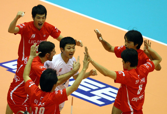 구미 LIG 손해보험 그레이터스(이하 LIG손보)가 아마추어 초청팀 상무를 꺾고, 3연승 행진을 이어갔다. LIG손보는 13일 오후 구미 박정희 체육관에서 열린 NH농협 2007-2008 V리그 남자부 1라운드 경기서 23득점을 올린 팔라스카와 17득점한 이경수의 활약에 힘입어 권광민이 13점을 올리며 분전한 상무를 세트 스코어 3-0(25-23 25-21 25-21)으로 완파, 시즌 3승 1패를 기록했다. 상무는 4전 전패. 첫 세트는 예상을 깨고 양 팀이 팽팽한 접전을 벌였다. 국내 최강 좌우 쌍포로 꼽힌 팔라스카와 이경수를 앞세운 LIG손보였지만 상무도 끈끈한 수비를 바탕으로 맞불 작전을 벌였다. 쉬운 승부가 아니었다. 센터 방신봉의 블로킹, 이경수-팔라스카의 강 스파이크가 불을 뿜은 LIG손보는 착실히 포인트를 추가하며 일찌감치 승기를 잡았으나 상무의 추격은 매서웠다. 초반 5-1까지 앞선 LIG손보가 잠시 주춤할 때, 상무는 센터 문성준의 C속공과 레프트 이동규의 날카로운 역습으로 금세 따라붙었다. 20-20까지 랠리가 유지되던 상황에서 LIG손보는 방신봉의 안정된 블로킹과 팔라스카의 오픈 연타가 폭발해 상무의 추격을 따돌리고 세트를 2점차로 가져갈 수 있었다. 두 번째 세트도 치열하긴 마찬가지였다. 단 한세트라도 확보하기 위한 상무의 무시무시한 사투에 LIG손보는 내내 어려움을 겪어야 했다. 팔라스카를 뺄 수 없는 이유이기도 했다. 8-7 상황까지 전개됐던 박빙의 흐름은 이후부터 LIG손보가 쥐기 시작했다. 상대 범실로 포인트 확보에 성공한 LIG손보는 이경수와 팔라스카가 강타를 꽂으며 격차를 벌렸다. 상무는 라이트 권광민의 오픈 공격과 김철홍의 문성준의 템포 빠른 속공으로 막판 추격전을 시작했지만 팔라스카의 백어택이 2차례나 거푸 터져 LIG손보가 세트를 차지했다. 마지막 3세트는 LIG손보의 일방적 양상이었다. 허탈하게 초반 1, 2세트를 내준 때문인지 상무의 기세는 꺾였고, LIG는 초반부터 강공을 퍼부으며 기선을 제압했다. 잠시 힘을 냈던 상무는 14-15까지 따라붙었으나 그 이상은 무리였다. LIG손보는 상대 권광민의 스파이크 서브가 네트에 걸리며 점수를 벌릴 수 있었고, 침착한 마무리로 승리를 따냈다. yoshike3@osen.co.kr KOVO 제공.