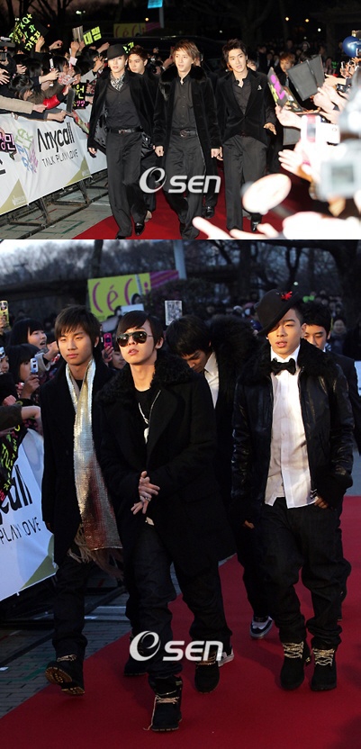 제 22회 골든디스크 시상식의 디스크부문 본상 총 7팀이 가려졌다. 그중 6팀이 모두 남성이라 눈길을 끌었다. 14일 오후 6시 서울 올림픽공원 올림픽홀에서 류시원, 김아중의 진행으로 열린 22회 골든디스크 시상식에서 디스크부문 본상으로 에픽하이, 슈퍼주니어, 신혜성, 휘성, SG워너비, 양파, 빅뱅 등 총 7팀의 수상자가 가려졌다. 그중 6년 만에 컴백한 양파를 제외하고 6팀이 모두 남성팀이어서 이목을 끌었다. 올해 골든디스크 시상식은 그동안 구분 없이 10팀의 본상수상자를 선정했던 것과는 달리 올해부터는 디스크부문과 디지털음원 부분으로 나눠 각각 7팀, 3팀씩 뽑는 것으로 변화를 주었다. 달라진 음반 시장을 반영한 결과라 볼 수 있다. 이날 본상을 수상한 7팀 중 에픽하이는 2006 미스코리아 진 이하늬의 가야금 연주에 맞춰 힙합과 국악이 만난 독특한 무대를 꾸며 흥을 돋우었으며 신혜성은 홀로 신화의 ‘Brand New'를 불렀다. hellow0827@osen.co.kr 디스크 부문 본상을 수상한 슈퍼주니어와 빅뱅