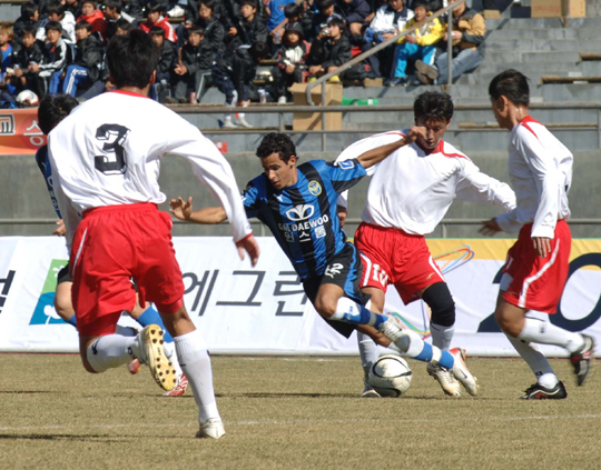 대충 윤곽은 드러났다. 북한 내 최강 전력을 자랑하는 4.25팀을 통해 북한 대표팀의 전력이 간접적으로나마 노출됐다. 지난 14일 중국 원난성 쿤밍 홍타 스타디움서 열린 친선 평가전서 인천 유나이티드는 다소 무거운 몸놀림을 보인 반면 4.25는 빠른 스피드와 견고한 수비로 한국 축구 관계자들을 놀라게 했다. 4.25와 평가전은 의미가 있었다. 허정무 신임 감독이 이끄는 한국 대표팀이 내년 3월 26일과 6월 22일 북한과 2010 남아공월드컵 아시아 지역 3차 예선에서 격돌하기 때문이다. 한국 축구를 따라잡으라는 김정일 국방위원장의 특별 지시로 창설된 4.25는 소속 선수 상당수가 북한 대표로 뛸 만큼 출중한 실력을 자랑한다. 실제로 4.25는 한 박자 빠른 침투 패스로 인천 수비진을 쉴 새 없이 괴롭혔다. 전반 20분 길철남의 선제골은 후방에서 길게 넘어온 패스에 뒷공간을 내준 인천 수비수들의 잘못이 컸다. 불과 6분 뒤 터진 박영진의 추가골 역시 정교한 2대1 패스를 활용한 돌파를 인천 수비라인이 사전에 차단하지 못한 탓이었다. 그렇다고 공격만 강한 것은 아니었다. 4.25는은 수비에서도 탁월한 몸놀림을 보여줬다. 포백을 주축으로 한 4.25의 디펜스에 인천 공격수들은 쩔쩔맸다. 눈에 띄는 장신은 없었어도 빠른 판단력과 공중볼 장악 능력으로 위험 지역에서 볼을 철저히 차단, 만회골을 노렸던 인천 공격을 무력화했다. 오히려 타 포지션과 빠른 연계 플레이로 위협적인 역습을 감행했다. 이밖에 북한 축구 특유의 몸을 날리는 투지와 저돌적인 돌파력도 여전했고, 패기와 끈끈한 조직력 또한 그대로 드러났다는 평가다. 북한의 전력을 간접 분석하기 위해 중국 쿤밍 현지로 급파됐던 정해성 대표팀 수석코치도 예상 밖으로 강한 전력에 상당히 놀랐다. 공격과 수비의 탁월한 밸런스에 경계심을 느낀 것으로 전해졌다. 부담스러운 '코리안 더비'를 앞둔 허정무호. 비록 이번 평가전에 출전한 4.25 선수들중 몇 명이나 국가 대표로 선발될지는 미지수지만 확실한 것은 오랫만에 겪어 본 북한 축구가 결코 녹록치 않다는 점이다. yoshike3@osen.co.kr 인천 유나이티드 제공.