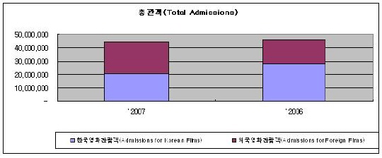 올 1월부터 11월까지 한국영화 점유율이 전년 대비 26.7% 하락했다. 영화진흥위원회가 발표한 한국영화산업통계 자료(서울 관객 기준)에 따르면 1월부터 11월까지 한국영화를 관람한 관객수는 2051만 1796명이다. 점유율은 46.8%에 불과해 절반을 넘지 못했다. 지난해 같은 기간 한국영화는 2800만 1435명을 동원, 점유율 61.3%를 기록했던 것과 비교하면 4명 중 한명 꼴로 한국영화를 보는 비율이 줄어든 셈이다. 특히 지난해 상영작 106편보다 많은 111편이 올해 개봉했지만 한국영화 관람객수는 그와 비례해 늘어나지 않았다. 반면 외국영화는 지난해 227편보다 많은 273편이 상영됐고, 관객수도 1765만 8277명에서 2330만 6698명으로 늘어났다. 하지만 한국영화의 부진 탓인지 1월부터 11월까지의 관객수는 지난해(4565만 9712명)보다 4% 감소한 4381만 8494명을 기록하고 있다. 올 초부터 심심치 않게 들려왔던 한국영화의 침체에 대한 우려의 목소리가 현실로 나타난 것이라 할 수 있다. pharos@osen.co.kr