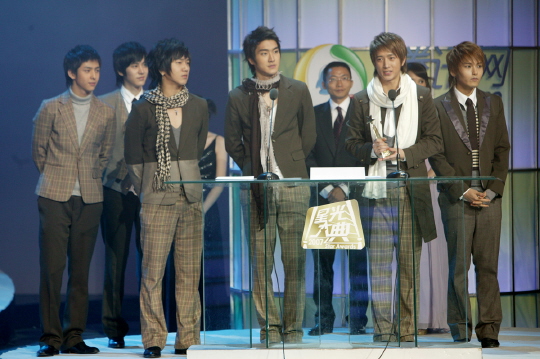 그룹 슈퍼주니어가 중국에서도 2007년 최고의 아시아스타임을 인정받았다. 슈퍼주니어는 17일 저녁 7시 30분 중국 베이징 화교성대극장에서 열린 제2회 ‘2007 성광대전(星光大典)’시상식에서 ‘올해의 아시아스타상’을 수상했다. ‘2007 성광대전’은 중국의 유명 포털사이트 QQ.com에서 주최하는 연말시상식으로 영화, TV, 음악, 연극 등 총 30여 개 부문에 걸쳐 한 해 동안 활약한 수상자들을 가리는 시상식. 특히 각 부문의 수상자는 MTV, 호남위성TV 등의 방송과 경화시보, 남방도시보 등 신문, 북경청년주간, 전영세계 등 잡지까지 중국 전역의 권위 있는 매체 100여 곳과 약 2억 2000명 회원들의 투표에 의해 선정되는 만큼 슈퍼주니어의 이번 수상은 중국 현지에서의 높은 인지도와 인기를 실감케 한다. ‘올해의 아시아스타상’을 수상한 슈퍼주니어는 “슈퍼주니어가 이렇게 성장할 수 있도록 도와주신 이수만 선생님과 SM 직원 여러분께 감사드린다. 또한 매번 중국에 올 때마다 환영해주시고 열정적인 환호를 보내주시는 중국 팬 여러분께도 특별히 감사의 인사를 전하고 싶다. 앞으로도 더욱 멋진 모습 보여드리는 슈퍼주니어가 되도록 열심히 노력하겠다”며 중국인 멤버 한경이 대표로 소감을 밝혔으며 이어 축하무대로 감미로운 ‘Marry U’를 선사했다. 이날 시상식은 인터넷사이트 QQ.com에서 생중계됐으며 29일경 MTV를 통해 녹화 방송될 예정이다. 한편 슈퍼주니어는 후속곡 ‘Marry U’가 방송횟수 순위집계사이트 에어모니터(www.airmonitor.co.kr)에서 지난 일주일간 공중파 및 케이블 TV, 라디오의 방송횟수를 모두 집계한 주간 종합차트 1위(12월 10일~12월 16일)에 올라 3주 연속 1위를 차지하는 등 겹경사를 누리고 있다. hellow0827@osen.co.kr