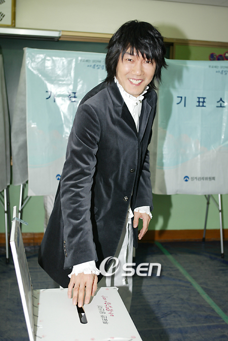 ‘실천하는 가수’ 김장훈(40)이 또 한번 솔선수범하는 모습을 보였다. TV에 나와 국민들에게 “소중한 한 표를 행사해 달라”고 호소하는 데만 그치지 않고 직접 제 17대 대통령 선거에 참여해 유권자의 권리를 행사했다. 김장훈은 19일 오후 경기도 고양시 일산구 가좌동에 있는 송포초등학교를 찾았다. 현재 거주하는 곳은 서울 마포이지만 주소지는 고양시로 되어 있다. 일산구 가좌동은 김장훈의 어머니가 살고 있는 지역이고 마포에서 월셋방 생활을 하는 김장훈은 어머니 앞으로 주소가 남아 있다. 대통령을 뽑는 투표 참여가 뭐 대수인가 할 수도 있지만 연예인의 스케줄을 아는 사람이면 그런 말을 함부로 못한다. 김장훈만 해도 오는 21일부터 4일간 계속되는 크리스마스 콘서트 ‘김장훈 원맨쇼’를 앞두고 있다. 총 제작비 18억 원이 들어가는 초대형 행사 준비로 마음이 온통 콘서트에만 쏠려 있다. 게다가 투표소가 고양시라 한번 움직이는 게 여간 성가신 일이 아니다. 투표소 앞에서 기자들과 만난 김장훈은 “불만에 가득 찼던 과거에는 투표도 잘 안하고 그랬다. 나이를 먹다 보니 사람도 긍정적으로 변하면서 투표 참여의 필요성을 느꼈다. 자기도 잘 못하면서 남을 비난하거나 부정적으로 사는 게 옳지 않다는 것을 알게 됐고 최선이 아니면 차선이라도 선택해야겠다는 생각을 갖게 됐다”고 말했다. 지난 9년간 30억 원을 사회에 기부한 ‘기부천사’라는 사실이 알려지면서 김장훈은 이번 선거에도 적극적으로 움직였다. 중앙선거관리위원회에서 제작한 공익광고에 모델로 나서서 국민들의 선거 참여를 독려하기도 했다. 그 공익광고의 카피가 “최선이 아니면 차선이라도 선택을 해야죠”였다. 광고 카피의 탄생 과정에 대해 김장훈은 “원래 제가 밀었던 카피는 선거 날 여행을 많이 간다고 하니까 ‘짐 푸세요, 가더라도 투표하고 갑시다’였는데 너무 노골적인 것 같아 채택되지 않았다. 최선이 아니라 차선을 선택해 투표하자는 것도 괜찮았던 것 같다”고 말했다. 대통령 선거에 맞춰 연예인들의 정치 참여도 상당 수 있었는데 여기에 대한 소신은 “자기 일 열심히 하는 게 곧 정치”라는 취지를 밝혔다. 김장훈은 “정치에 관심을 갖는 것은 상관없지만 개인적으로는 자기 일 열심히 하는 게 좋다고 생각한다. 그래서 정치도 연예인은 개입 안 하는 게 맞다고 생각한다. 제 직업이 사람들과 함께 울고 웃는, 영혼을 파는 가수인데 정치색을 띠게 되면 영혼으로 교감하던 사람들이 정치 노선에 따라 갈리지 않겠는가. 다만 국가적이거나 민족적인 주제에 대해서는 누구보다도 열심히 참여해야 한다고 생각한다”고 말했다. 그러면서도 김장훈은 “정치에 관심을 갖는 것은 중요하다”고 다시 한번 강조했다. 100c@osen.co.kr