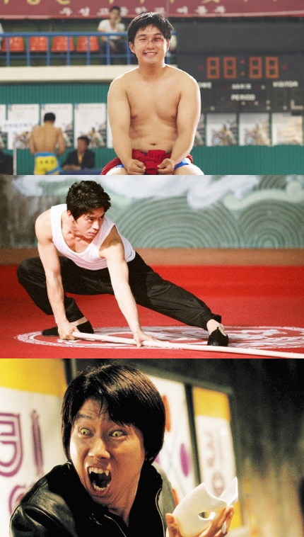 설 추석 연휴면 TV를 통해서 다시 보게 되는 특선 한국영화가 19일 17대 대선을 맞이해서 어김없이 펼쳐졌다. MBC KBS SBS 지상파 3사는 19일 오전 모두 한국영화 3편을 각각 방송했다. 영화 ‘천하장사 마돈나’ ‘김관장 대 김관장 대 김관장’ ‘흡혈형사 나도열’이다. 국민 투표일, 특선 영화를 편성하는 데는 나름대로 이유가 있을 게다. 외출보다는 집에서 TV를 보면서 투표율을 높이자는 의도가 깔려 있다. 하지만 과연 이날 편성된 영화들이 투표율을 높이는데 영향을 끼쳤을 지는 의문이다. 이미 케이블 영화 전문 채널을 통해 숱하게 방송됐던 영화를 편성해 생색만 낸 기색이 역력하다. KBS 2TV는 영화 ‘천하장사 마돈나’(이해영 이해준 감독)를 방송했다(오전 10시 40분). ‘천하장사 마돈나’는 여자가 되고 싶은 고등학생 오동구가 수술비 마련을 위해 씨름 대회에 출전하는 내용을 담았다. 오동구 역으로 출연한 류덕환은 지난해 제27회 청룡영화제 신인남우상과 제44회 대종상영화제 신인남우상의 영예를 함께 얻었다. MBC는 특선 한국영화 ‘김관장 대 김관장 대 김관장’(박성균 감독)을 선택했다(오전 9시 45분). 코미디 영화 ‘김관장 대 김관장 대 김관장’은 코믹 연기의 달인 신현준 최성국 권오중이 각각 태껸 검도 쿵푸 도장을 운영하는 김 관장으로 출연해 연신 코믹 액션 연기를 펼쳐 배꼽을 잡는다. 충청도의 한 작은 마을에서 동네 아이들을 놓고 수련생 모집을 위한 혈투를 벌인다. 탁재훈까지 카메오로 출연해 폭소를 더했다. SBS는 특선 한국영화로 ‘흡혈형사 나도열’(이시명 감독)을 편성했다(오전 10시 20분). 코미디 액션물인 ‘흡혈형사 나도열’은 비리형사 나도열이 드라큘라의 피를 흡혈한 흡혈모기에 물려 초인적인 능력을 갖게 된다는 설정이다. 흥분하면 흡혈귀로 변신하는 형사 나도열로 영화배우 김수로가 선전했다. crystal@osen.co.kr 위부터 ‘천하장사 마돈나’의 류덕환, ‘김관장 대 김관장 대 김관장’의 권오중, ‘흡혈형사 나도열’의 김수로.