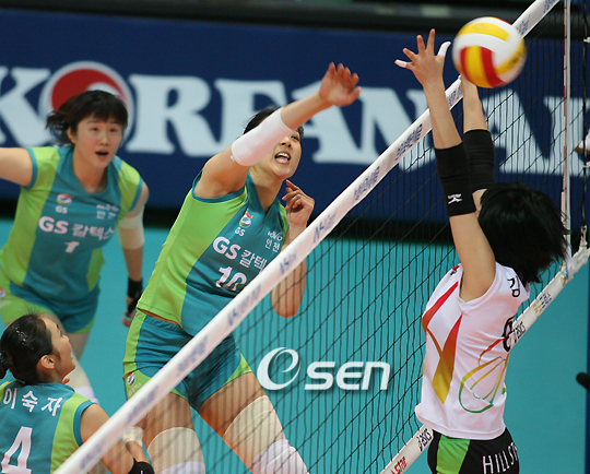 GS칼텍스가 현대건설을 꺾고 2라운드서 좋은 출발을 알렸다. 19일 오후 인천 도원 시립체육관에서 열린 NH농협 2007-2008 V리그 여자부 2라운드 첫 경기서 GS칼텍스는 현대건설을 세트 스코어 3-1(25-16 26-24 22-25 25-21)로 제압하고, 3승 2패를 기록했다. 현대건설은 5전 전패. 첫 세트는 GS칼텍스의 일방적인 분위기 속에서 전개됐다. 현대건설 좌우 공격수 한유미와 이진희에게 점수를 내리 내줘 0-3으로 끌려가던 GS칼텍스는 센터 정대영의 서브 에이스를 시작으로 차곡히 따라붙어 동점을 만든 뒤 라이트 배유나의 공격으로 역전에 성공했다. 흐름을 탄 GS칼텍스는 김민지의 속공 플레이와 외국인 선수 하께우의 침착한 공격을 잇달아 성공시키며 기세를 올려갔고, 상대에게 좀처럼 추격 찬스를 주지 않았다. 현대건설은 센터 김수지가 3득점을 올리고, 한유미가 3득점하는 등 분전했지만 한번 GS칼텍스로 넘어간 흐름을 끝내 되찾을 수 없었다. 결국 첫 세트는 GS칼텍스의 몫. 두 번째 세트는 양 팀이 팽팽한 접전을 이어갔다. 한점씩 주고받는 랠리가 전개되는 가운데 현대건설이 근소한 우위를 점했다. 양효진이 침착한 C속공을 성공하고, 한유미의 오픈 공격으로 점수차를 꾸준히 벌리던 현대건설은 먼저 24점 고지에 올랐지만 GS칼텍스의 공격력은 만만치 않았다. 하께우의 백어택 한방으로 동점을 이룬 GS칼텍스는 김민지가 오픈 공격과 속공 플레이를 연속으로 성공시켜 26-24로 듀스를 마무리지었다. 세트 스코어 2-0으로 앞선 GS칼텍스는 완승을 거두려는 듯 3세트에서도 전혀 공격의 고삐를 늦추지 않았다. 센터 김소정의 속공 및 블로킹과 김민지의 침착한 스파이크를 내리 성공시키며 초반부터 리드를 잡은 GS칼텍스는 현대건설의 범실까지 묶어 점점 격차를 벌려갔다. 그러나 위기에 몰린 현대건설의 반격은 매서웠다. 12-20으로 뒤진 상황에서 현대건설은 한유미의 2점 백어택과 양효진의 블로킹으로 추격을 시작했고, 급기야 20-20을 만들었다. GS칼텍스는 김민지가 오픈 공격을 성공, 재차 앞서는 듯 했지만 현대건설은 집요하게 물고 늘어졌고, 배유나의 실책과 양효진의 귀중한 블로킹 포인트로 앞서면서 역전을 이뤄냈다. 4세트에 들어서도 한점차 살얼음판 승부가 계속됐다. GS칼텍스가 근소한 우위를 점했지만 현대건설도 추격전을 이어가며 승부의 추이를 예측할 수 없게 만들었다. GS칼텍스 먼저 속공을 성공시키면 현대건설 한유미가 타점 높은 스파이크를 성공시켜 랠리를 유지하는 분위기가 이어져 코트를 뜨겁게 달궜다. 승부는 11-10 상황에서 갈렸다. 하께우의 절묘한 공격으로 2점차로 스코어를 벌린 GS칼텍스는 상대의 디펜스진이 허물어지는 틈을 놓치지 않았다. 분위기를 잡은 GS칼텍스는 배유나의 오픈 공격과 하께우의 속공으로 점수를 계속 추가했고, 현대건설에게 이후 주도권을 내주지 않으며 침착하게 경기를 마무리했다. yoshike3@osen.co.kr 19일 오후 인천에서 열린 V리그 여자부 경기서 GS칼텍스의 김소정이 세터 이숙자의 토스를 속공으로 연결시키고 있다../인천=손용호 기자spjj@osen.co.kr