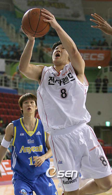 전정규(24)가 자신의 평균 득점을 훨씬 뛰어넘는 25득점을 기록하며 승리를 이끌었다. 20일 인천 삼산월드체육관에서 펼쳐진 인전 전자랜드와 서울 삼성의 경기서 전자랜드가 102-97로 승리를 거뒀다. 이로써 전자랜드는 삼성과 나란히 12승 12패로 동률을 이뤄 공동 6위로 한 계단 뛰어올랐다. 전자랜드는 2쿼터서 삼성에 5번의 가로채기를 당하며 역전의 빌미를 제공했지만 3쿼터에만 10득점을 성공시킨 카멜로 리의 활약에 힘입어 재역전에 성공했다. 전정규(경기 당 평균 7.48득점)는 25득점을 기록하며 경기 내내 공격을 주도했고 테런스 섀넌(34득점)과 카멜로 리(26득점)도 팀 승리에 힘을 보탰다. 1쿼터부터 두 팀은 외곽포 맞대결로 경기를 시작했다. 테런스 섀넌이 시작하자마자 3점슛을 성공시킨 데 이어 같은 팀 카멜로 리도 3점슛을 꽂아넣으며 기선을 제압했다. 삼성은 강혁의 3점포와 빅터 토마스의 득점포로 전자랜드와 접전을 펼쳤다. 삼성은 2쿼터 들어 근소하게 앞서 나가기 시작했다. 삼성은 연속 두 번의 가로채기를 득점으로 성공시키며 33-33 동점을 만들었고 이어 빅터 토마스의 3점슛이 적중되면서 역전했다. 2쿼터 3분을 남겨 놓고 이정석이 또 전자랜드 공을 가로채기 하면서 토마스가 덩크슛으로 연결, 점수차를 벌렸다. 전반 종료 30여 초를 남겨 놓고 삼성은 강혁의 가로채기에 이은 이원수의 레이업슛 득점으로 51-44로 달아났고 전반을 앞선 채로 마감했다. 그러나 전자랜드는 3쿼터서 전정규의 3점포를 시작으로 삼성을 추격했다. 정선규와 섀넌의 득점포로 59-62까지 추격한 전자랜드는 카멜로 리의 자유투 득점이 성공하면서 61-62, 1점차까지 추격했다. 이어 카멜로 리는 3점슛까지 깨끗하게 성공시키면서 전자랜드는 다시 역전에 성공했고 리는 2점슛에 이은 추가 자유투까지 성공시키면서 3쿼터를 71-68로 마감하는 데 결정적인 역할을 담당했다. 4쿼터서 전자랜드는 테런스 레더에게 연속 4득점을 허용하면서 한때 87-85까지 추격을 허용했다. 하지만 레더가 종료 2분 30여 초를 남겨놓고 5반칙 퇴장을 당하면서 삼성은 흔들렸고 반면 전자랜드는 리가 종료 1분여를 남겨 놓고 먼거리서 3점슛을 성공시키며 사실상 승부를 결정지었다. 한편 종료 32.4초 전 안준호 삼성 감독은 선수들을 코트에서 모두 불러들이며 심판 파정에 항의하는 모습을 연출했다. 인천 인천 전자랜드 102 (27-25 17-26 27-17 31-29) 97 서울 삼성 7rhdwn@osen.co.kr