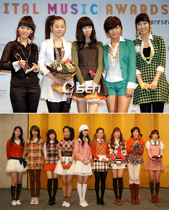 그룹 소녀시대와 원더걸스가 한 프로그램에 같이 출연해 눈길을 모았다. 소녀시대의 유리와 수영, 원더걸스의 선예와 선미는 22일 방송될 KBS 2TV '스타 골든벨'에 함께 출연했다. 이날 소녀시대의 수영은 “원더걸스와 가요 프로그램 녹화장에서 많이 만났었고 함께 공연한 적도 있지만 정작 친해질 기회는 없었다”며 “항상 가요계의 10대 아이돌 소녀 그룹의 양대 산맥으로 사랑해주셔서 감사하다”는 말을 전했다. 서로에 대한 장점으로 소녀시대는 “원더걸스의 프로다운 무대 매너와 실감나는 표정이 최고다”라고 밝혔다. 원더걸스의 선미는 “우리는 무대에서 좀 촌스럽다고 하는데 소녀시대는 항상 상큼 발랄하다”고 답했다. 마지막으로 원더걸스의 선예는 박진영의 컴백으로 가요 순위의 1위 자리를 뺏긴 것 같지 않느냐는 질문에 “후속곡으로 활동을 막 시작한 시기라 속상하진 않다. 박진영 사장님이 너무 공들여 준비한 앨범이라 정말 진심으로 축하드린다”고 말했다. yu@osen.co.kr 원더걸스와 소녀시대(아래).