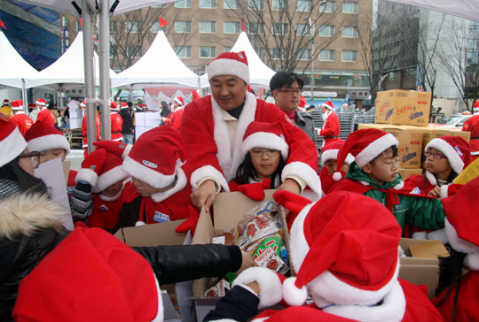 '전국구 에이스' 손민한(32, 롯데)이 산타로 변신했다. 손민한은 지난 22일 오후 부산역 광장에서 한국복지재단 부산지부가 주최한 '희망 산타 원정대' 행사에 참가했다. 지난 2005년부터 한국복지재단 부산지보 홍보대사를 맡고 있는 손민한은 이날 오프닝 행사에서 기념사를 전한 뒤 팬클럽 회원 10여 명과 복지재단 후원자들과 함께 사회복지시설 어린이들을 위한 선물을 포장했다. 이어 손민한은 부산 동구 초량동에 위치한 부산지역 아동 센터를 방문, 직접 포장한 선물을 전달한 뒤 어린이들과 즐거운 시간을 보냈다. 손민한은 해마다 크리스마스에 앞서 산타 복장을 하고 부산지역 소년소녀가장과 결손 가정 어린이들을 위한 행사에 앞장서고 있다. 이날 행사에 참가한 손민한은 "추운 날씨에도 불구하고 많은 사람들이 모여 따뜻한 마음을 전할 수 있어서 너무 기쁘다"며 "조금이나마 어린이들의 마음이 따뜻해졌으면 좋겠다"고 전했다. what@osen.co.kr 롯데 자이언츠 제공.