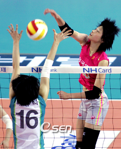 “(김)연경이가 아무래도 훨씬 낫죠”. 한국 여자배구의 미래를 짊어진 두 거포의 대결. 네트를 사이에 두고 맞서게 되는 레프트 김연경(19, 흥국생명)과 라이트 배유나(18, GS칼텍스)의 두 번째 승부는 또다시 김연경의 판정승으로 막을 내렸다. 23일 오후 천안 유관순체육관에서 열린 NH농협 2007-2008 V리그 여자부 2라운드 흥국생명과 GS칼텍스의 경기에선 흥국생명이 세트 스코어 3-1로 짜릿한 승리를 거뒀다. 이날 이희완 GS칼텍스 감독이 배유나를 나혜원과 번갈아 교체 투입하는 바람에 김연경과 맞붙은 시간은 그리 길지 못했다. 어쩌면 정면 승부가 아니었기 때문에 섣부른 결론일수도 있으나 기록상으론 김연경이 배유나를 압도했다. 김연경은 블로킹 1점을 포함해 총 28득점을 올렸고, 공격 성공률은 52.00%에 달했다. 공격 점유율도 전체 출전 선수를 모두 통틀어 가장 높은 31.85%였다. 반면 배유나는 결코 만족할 수 없는 기록을 냈다. 1세트에서 5득점을 올린 뒤 마지막 4세트서 1점을 올린 게 전부. 공격 성공률은 28.57%에 그쳤고, 점유율도 10.37%에 머물렀다. 경기를 마친 흥국생명 동료들도 한결같이 “실력 자체는 비교하기 어렵지만 경험과 플레이를 풀어가는 능력면에서 (김)연경이가 여러 모로 낫다”고 공통적인 의견들을 내놓았다. 김연경은 프로 첫 만남이었던 지난 12일 1라운드 경기서도 배유나를 제압했다. 김연경은 여기서도 25득점을 올려 10득점에 그친 배유나를 완벽히 봉쇄했다. 황현주 감독은 “차츰 시간이 지나 (배)유나의 경험이 쌓이면 달라질 문제지만 현 시점에선 분명 김연경이 배유나보다 앞서는 게 사실”이라고 평가했다. 또 한번의 대결에서 활짝 미소를 짓게 된 김연경. 역시 선배 실력을 능가할 수 있는 후배는 없다는 스포츠계 속설이 그대로 입증된 순간이기도 했다. yoshike3@osen.co.kr 흥국생명 김연경이 GS칼텍스 배유나의 블로킹을 향해 강 스파이크를 시도하는 모습.