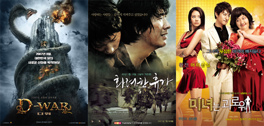 2007년 한국영화는 극심한 침체로 인한 우려의 목소리가 높았다. 우려는 현실로 나타났고, 소수의 영화를 제외하고 손익분기점을 넘기기도 힘겨운 상황이 벌어졌다. 이는 인기검색어 순위에서도 확연히 드러난다. 포털사이트 네이버의 2007년 인기검색어 영화 부문 결산을 살펴보면 올 여름 쌍끌이 흥행을 기록했던 ‘디 워’가 1위를 차지했고, ‘화려한 휴가’, 지난해 연말부터 연초까지 흥행세를 이어갔던 ‘미녀는 괴로워’는 인기검색어 TOP 10에 겨우 이름을 올렸을 뿐 나머지는 외화의 몫이었다. 8월 1일 개봉해 843만명을 동원해 올해 최고 흥행기록을 세운 ‘디 워’가 2007년 한 해 동안 가장 많이 검색된 영화로 꼽혔다. 특히 ‘디 워’는 모든 분야를 망라한 가장 많이 검색된 검색어 순위에서도 8위를 차지했다. 개그맨 출신 심형래 감독이 메가폰을 잡고 오랜 제작기간과 막대한 제작비가 투입된 ‘디 워’는 호평과 혹평이 엇갈렸고, 각종 논란으로 많은 관심을 받았다. 또 한국영화로는 최초로 미국에서 대규모로 개봉하는 등 영화 개봉 전부터 개봉 후까지 끊임없는 화제거리였다. 하지만 같은 시기에 ‘디 워’와 함께 흥행을 기록했던 ‘화려한 휴가’는 9위, 지난해 연말 극장 흥행을 주도했던 ‘미녀는 괴로워’는 힘겹게 10위에 랭크됐다. ‘디 워’에 뒤를 이은 영화 부문 인기검색어는 전세계 최초로 국내에서 개봉해 외화 최고 흥행기록을 갈아치운 ‘트랜스포머’가 2위를 차지했다. ‘캐리비안의 해적-세상의 끝에서’가 3위, ‘해리포터와 불사조 기사단’이 4위에 올랐다. 만화를 원작으로 한 일본영화 ‘데스노트-라스트네임’이 5위, 브루스 윌리스 주연의 ‘다이하드 4.0’이 6위, 스파르타 전사들의 활약을 그린 ‘300’이 7위였다. 올 상반기 할리우드 블록버스터 공습의 시작을 알린 ‘스파이더맨3’이 8위다. 인기검색어 순위만 봐도 한국영화가 2007년 수난과 고통의 시간을 보냈다는 것을 한 눈에 알 수 있다. 심지어 올 연말 개봉한 한국영화 기대작들도 외화에 밀려 크게 주목받지 못하고 있다. 우려의 목소리는 현실로 그대로 드러났지만 2008년에는 한국영화가 다시 부활하기를 빈다. pharos@osen.co.kr