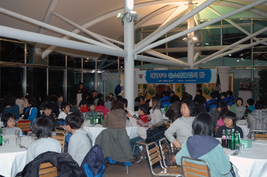 대구FC는 지난 27일 오후 7시 월드컵컨벤션웨딩에서 2007년 유소년클럽 창단 원년을 기념하고 지속적인 화합과 발전을 도모하기 위해 '대구FC 유소년 클럽의 밤' 행사를 개최했다. 이번 행사에는 회원 및 가족, 구단 관계자 등 200여 명이 참석해 올 한해를 정리하며 내년에도 유소년 축구 발전을 기원했다. 이날 대구는 올 한해 대구FC 유소년 클럽을 위해 아낌없는 정성을 보여준 학부모 김순화, 김영희, 김은진, 이금주, 이성림, 조금란 씨에게 감사패 전달했다. 김민규, 정현준 군에게 모범상을 각각 수여했다. 이와 함께 대구FC 유머 중계 해설자인 방우정 씨의 진행으로 1시간 동안 다양한 레크리에이션을 통해 유소년과 가족들이 하나가 되는 즐거운 시간을 가졌다. 특히 유소년과 가족이 사랑과 즐거움이 가득한 이벤트를 통하여 서로의 정을 나누는 좋은 시간을 보내며 한해를 마무리 했다. 대구FC 유소년 클럽은 4월 6일 대구월드컵경기장에서 가졌던 출범식을 시작으로 대구지역의 각종 대회 참가를 비롯해 대구 선수단과 함께하는 1일 축구클리닉, KBS 날아라 슛돌이, A3 Friendly 유소년 캠프 참가 등 다양한 활동을 펼쳤다. 대구는 앞으로 유소년 클럽의 확대 운영과 U-18 육성반 창단 등을 통해 지역 어린이들에게 한발 더 다가서고 선진 클럽시스템의 초석을 다져나갈 계획이다. what@osen.co.kr 대구FC 제공.