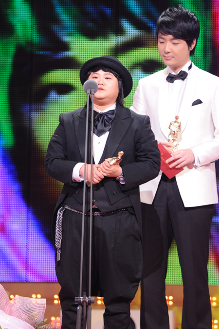 “형은이에게 이 영광을 바친다.” 김태현 김신영이 2007 SBS 방송연예대상에서 코미디 인기상을 수상했다. 28일 서울 SBS 등촌동 공개홀에서 열린 SBS 방송연예대상에서 ‘웃찾사’의 ‘딸부잣집’으로 코미디 인기상을 공동 수상한 이들은 하늘로 떠난 故 김형은에게 수상의 영광을 돌렸다. 김신영은 “하늘 나라간 형은 언니에게 약속 했다. 2007년에는 꼭 열심히 해서 상을 받아 형은 언니에게 바칠 거라 했는데 이렇게 받게 됐다. 형은 언니에게 이 영광을 돌린다”고 밝혀 감동을 자아냈다. 김태현은 “코디가 화이트 톤이 송승헌도 입은 적이 있고 이번에도 많이들 입고 올 거라고, 트렌드라고 입혀 줬는데 오늘 와보니 앙드레김 선생님과 나 둘만 입고 왔다”고 농담을 한 뒤 “우리가 개그맨이지만 쇼프로에 나가기 힘든데 잘 챙겨주는 강호동, 유재석, 박명수 선배 다 고맙다. 또 형은 양과 이 무대에서 같이 데뷔 했는데 뭐가 그리 급해서 먼저 갔는지… 형은아 고맙고 감사하다“고 말했다. 코미디 인기상을 두고 ‘형님뉴스’ 강성범, ‘퐁퐁퐁’ 문세윤, ‘형님뉴스’ 양세형, ‘웅이 아버지’이용진 등이 경합을 벌였다. happy@osen.co.kr