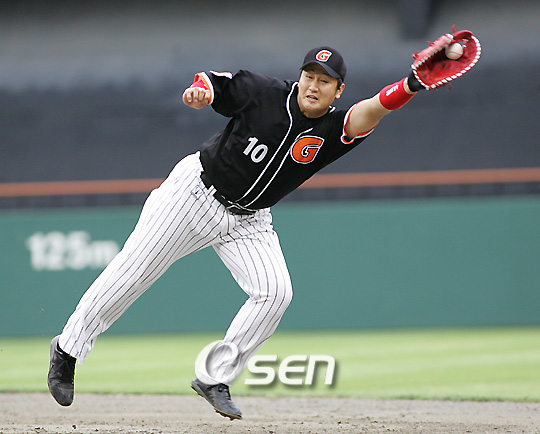 22일 롯데 자이언츠의 팀 훈련이 열릴 김해 상동구장. 거인 군단의 간판 타자 이대호(26)가 3루 수비 연습에 굵은 땀방울을 쏟아내고 있었다. 큰 체구(192cm 100kg)에도 불구하고 유연한 몸놀림으로 강습 타구도 손쉽게 잡아내며 안정된 수비를 선보였다. 이대호의 수비 훈련을 지켜보는 코칭스태프와 선수들도 감탄 연발. 이대호의 3루 수비는 결코 낯설지 않다. 지난 2006년 도하 아시안게임에서 4번타자 겸 3루수로 나선 이대호는 지난 시즌에도 3루수 전향설이 제기되었으나 부상 위험과 수비 부담을 우려해 무산된 바 있다. 특히 투수 출신 답게 강한 어깨에서 뿌리는 송구는 단연 돋보인다. 이대호의 3루 전향이 성공한다면 선수 운용에 한결 여유가 생긴다. 지난해 121경기에 출장, 타율 3할3푼5리 139안타 29홈런 87타점 79득점으로 국내 최정상급 타격 솜씨와 더불어 그동안 약점으로 지적돼 온 3루 문제도 해결될 전망. 공필성 수비코치는 "(이)대호의 3루 수비는 수준급이다. 실전에 투입해도 될 정도"라고 치켜 세웠다. 이어 공 코치는 "이번 해외 전훈에서 조금만 다듬으면 훨씬 좋아질 것"이라고 기대를 감추지 않았다. 이대호가 3루를 차지할 경우 기존 3루수 정보명(28)은 지명타자로 나설 가능성이 높다. 이대호도 만족스러운 반응. 이대호는 "3루 수비하는 데 큰 부담 같은 건 없다"고 자신감을 드러냈다. 거인 타선에서 절대적인 비중을 차지하는 이대호가 수비에서도 한 몫 해준다면 롯데 입장에서는 금상첨화라고 표현해도 과언이 아니다. what@osen.co.kr