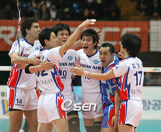 2위 대한항공이 한국전력을 여유있게 따돌리고 시즌 15승째(4패)를 기록했다. 한전은 8연패의 늪에 빠지며 2승17패를 기록했다. 2일 올림픽 제2체육관에서 펼쳐진 NH농협 2007-2008 V리그 남자부 4라운드 경기서 대한항공이 한전을 세트스코어 3-0(25-15 25-22 25-14)으로 누르고 1위 삼성화재를 추격했다. 다음 시즌부터 프로로 전환할 예정인 한전은 전력의 열세를 극복하지 못하고 완패하고 말았다. 1세트서 대한항공은 주포 보비(9득점)가 7득점을 하며 제 몫을 해줬고 신영수(15득점)와 장광균(9득점)이 레프트에서 연달아 공격을 성공시키며 한전을 압도했다. 한전은 라이트 양성만(11득점)이 4득점을 성공시켰으나 레프트 이병주(8득점)의 공격이 번번이 이영택에게 막히며 고전했다. 이영택은 1세트에서만 블로킹으로 3득점을 하며 한전의 공격을 철저하게 막아냈다. 2세트 한전은 서브 범실을 기록하며 힘들게 얻어 낸 역전의 기회를 놓치고 말았다. 17-14로 끌려가던 한전은 이영택(4블로킹득점)과 신영수에게 블로킹을 당하며 점수 차를 줄이는 데 실패했다. 그러나 한전도 만만치 않았다. 서브 5위에 올라있는 정평호(7득점)가 서브로 연속 2득점을 성공시키며 반전의 분위기를 만들었다. 또 양성만이 시간차 공격을 성공하며 21-19로 쫓아갔다. 그러나 마지막 서브가 실패하며 25-22로 대한항공에 세트를 내주고 말았다. 3세트도 대한항공이 경기의 주도권을 가지고 쉽게 풀어나갔다. 3세트 초반 신영수는 2m가 넘는 선수가 없는 한전의 블로킹 벽을 교란하며 날카로운 공격을 선보였다. 16-9로 앞서던 대한항공은 두터운 선수층을 가진 팀답게 후보들도 고루 기용하며 경기 감각을 끌어올리게 했다. 특히 신인 세터 한선수는 효과적인 볼 배급으로 팀의 승리에 보탬이 됐다. 한전은 경기에 대한 의욕이 잃고 범실을 하며 경기를 어렵게 만들었다. 결국 집중력이 떨어진 한전은 장광균에게 마지막 공격을 허용하며 25-14로 패했다. heman81@osen.co.kr